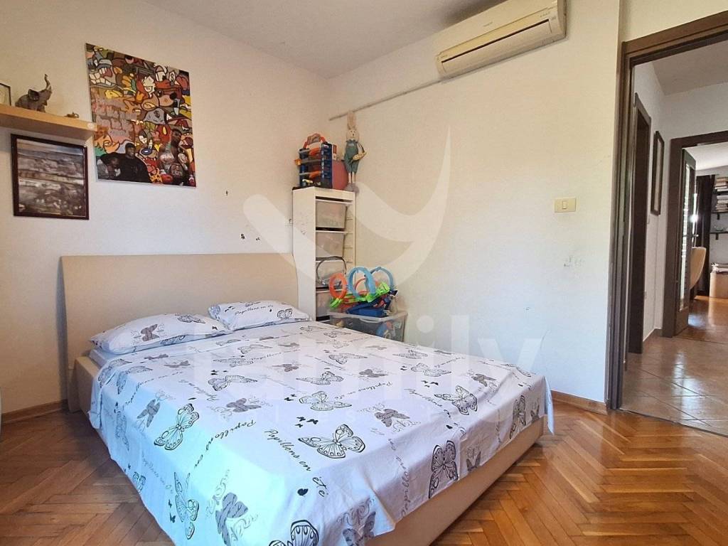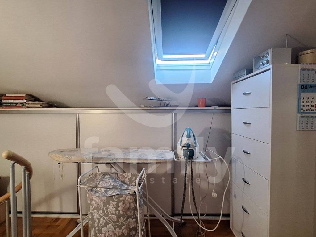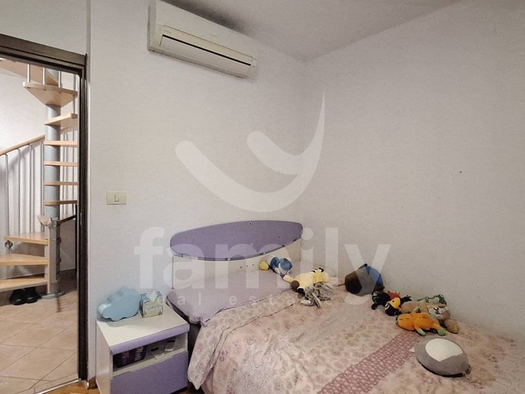 It is within the Municipality of Fažana that the aforementioned comfortable two-floor apartment is located, located on the second floor of a residential building with an area of 92 m2. The apartment is spread over two floors, and the ground floor consists of an entrance hall, two bright bedrooms, a bathroom equipped with a washing machine and dryer, a built-in water tank and a boiler, a living room with access to a closed loggia of approximately 5 m2, as well as a dining area and a kitchen. A spiral staircase lined with solid wood leads to the second floor of the aforementioned property and consists of an entrance hall, a bathroom with a living opening and one bedroom equipped with custom-made built-in sliding wardrobes. This beautiful apartment is equipped with PVC windows with double glazing and shutters and VELUX roof windows, while the heating and cooling system is regulated by four air conditioning units, and the floors are covered with parquet in the living room and bedrooms, while the bathrooms are tiled. The apartment is also equipped with a security entrance door, separate electricity and water meters, and a concrete mezzanine structure.