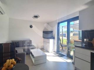 In a very sought-after location, in Štinjan, is the aforementioned apartment on the ground floor of a small building with a total of four residential units, and it covers 70 m2 with a 150 m2 garden. The apartment consists of a bright open space concept living room with a kitchen and access to a terrace, two spacious bedrooms with access to terraces, a bathroom and a storage room of 4 m2. This high-quality and modern apartment has three-layer PVC joinery in anthracite color with 9 gas chambers and electric lifts, which allows remote control, anthracite-colored security PVC entrance doors, and all external openings are equipped with mosquito nets. Heating and cooling is regulated by 3 air conditioning units, one unit is located in the living room while the other two are placed in the bedrooms and the bathroom is equipped with electric underfloor heating as well as a built-in cistern, boiler and washing machine. The floors throughout the building are covered with quality ceramics. The advantage of the property, in addition to being immediately habitable and high-quality decorated, is its location in terms of proximity to all the supporting facilities necessary for everyday life. The apartment also has 2 parking spaces and is sold fully furnished with all furniture and appliances.
