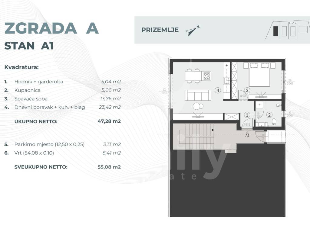In Fažana, in an excellent location, near the center of Fažana and the first well-maintained beaches, the construction of four buildings with a total of 23 residential units will soon begin, and the construction itself will be of top quality, luxurious and unique by a proven investor. This high-quality and modern apartment will be located on the ground floor of the building, with an area of 55.08 m2 with one covered parking space and will consist of a hallway with a wardrobe, one bedroom, bathroom, spacious and bright living room, kitchen and dining room. The apartment will also have a part of the garden and a shared swimming pool of 85 m2 is planned as part of the project. All buildings have anti-burglary entrance doors with high sound insulation and increased fire resistance, underfloor heating in the bathrooms with the possibility of paying extra for other rooms, French-type three-layer PVC carpentry on all external openings with blinds and mosquito nets, as well as high-quality ceramic tiles throughout the building with the option of choosing materials according to your own preferences. The heating and cooling system will also be regulated through the air conditioning unit.