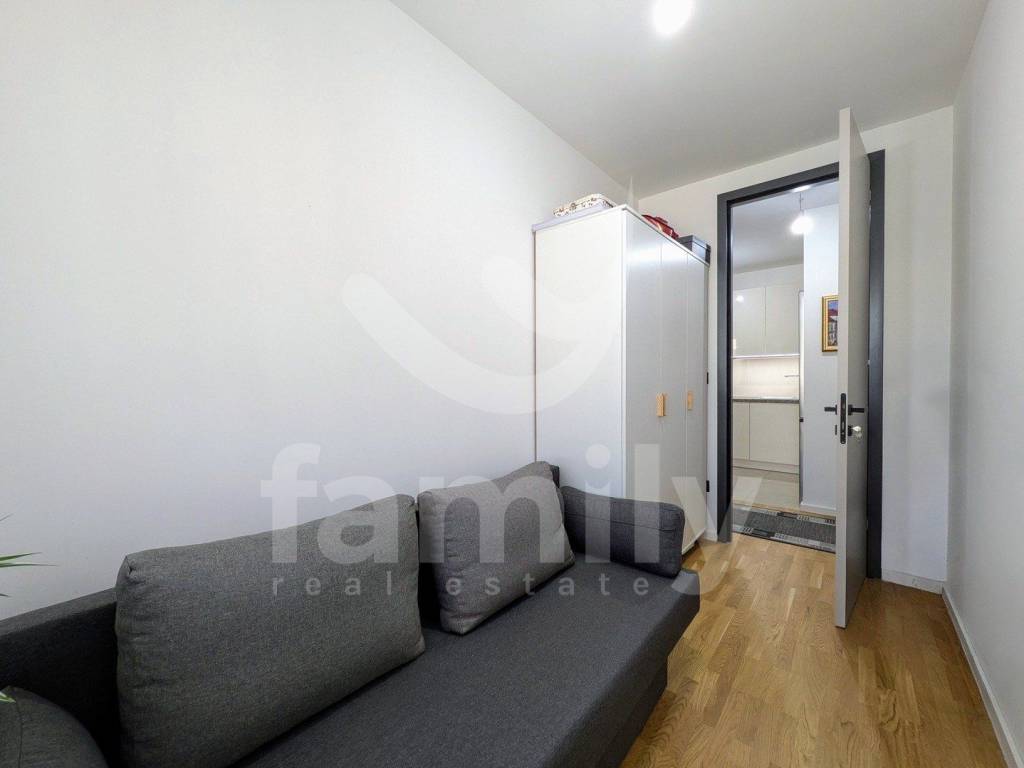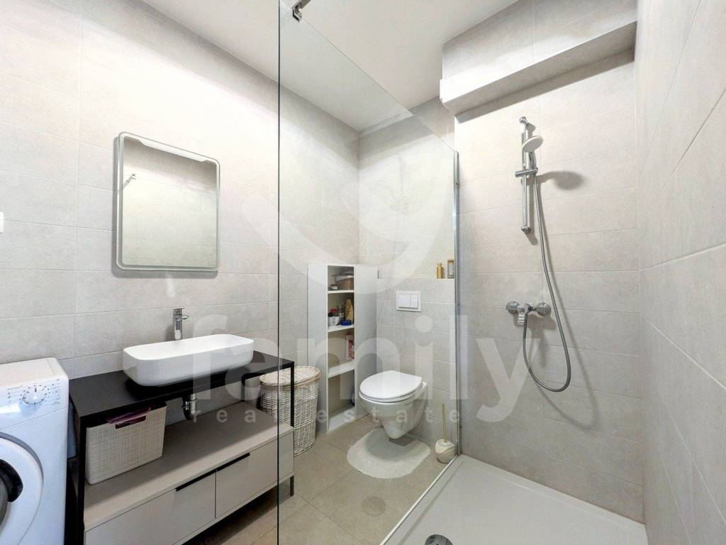 The bathroom (5.46 m²) is equipped with elegant Italian ceramic tiles, contemporary sanitary ware and modern storage solutions. In addition, the apartment has a pantry (1.64 m²) that provides additional space for organization and storage. The loggia (4.62 m²) is a perfect place to relax, and can be completely closed with movable blinds, which allows for a comfortable stay all year round.