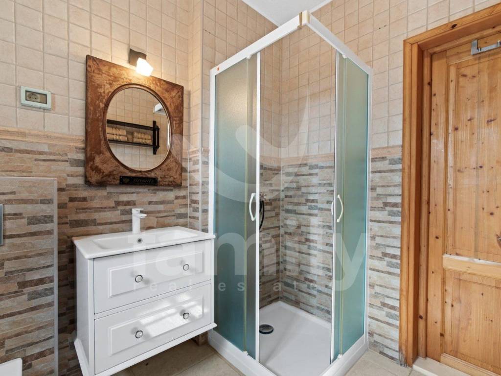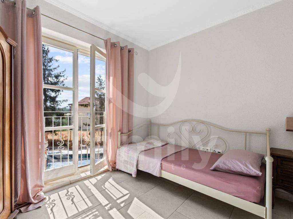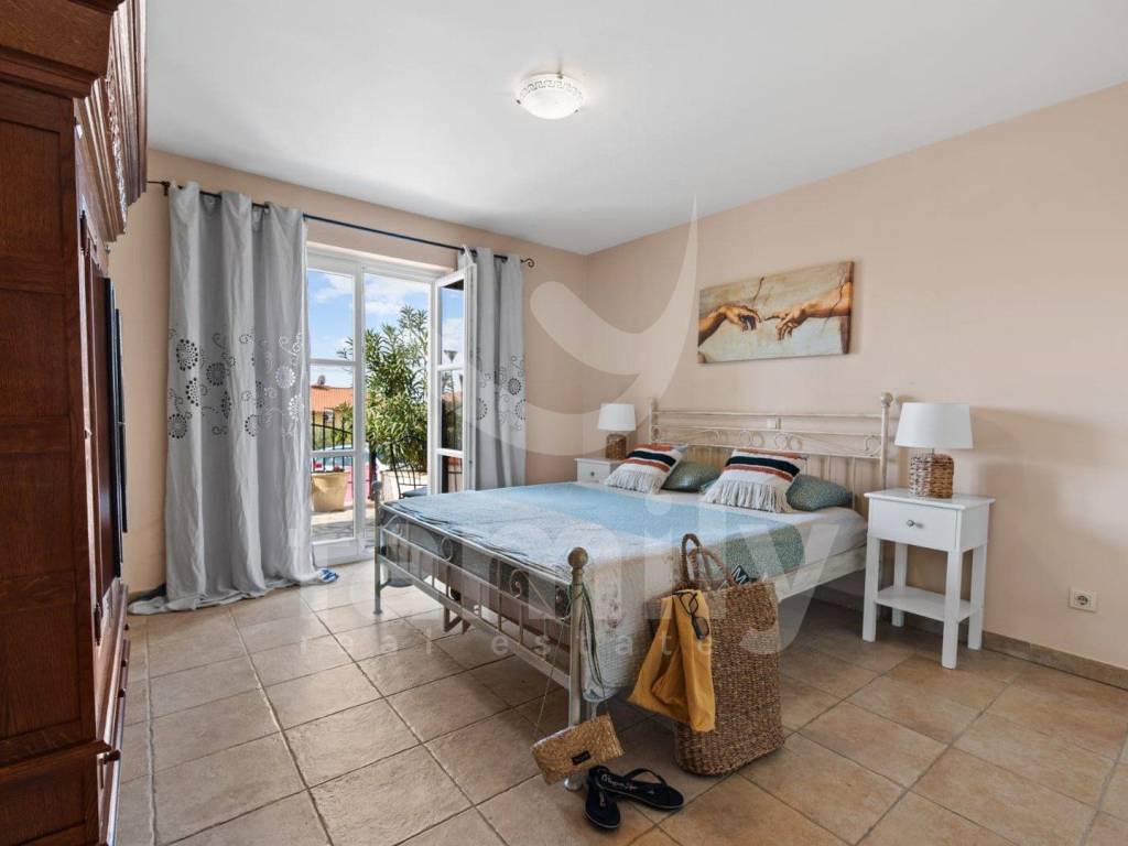 On the first floor there are three spacious bedrooms with French terraces for maximum comfort of your family or guests, a utility kitchen practical during your stay upstairs and one large bathroom. On the first floor there are also two separate terraces with views of the sea or the hilly landscape and the beautifully landscaped village.