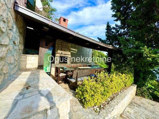 Ispred kuća se nalazi prostrano dvorište s natkrivenim prostorom za roštilj i bazenom