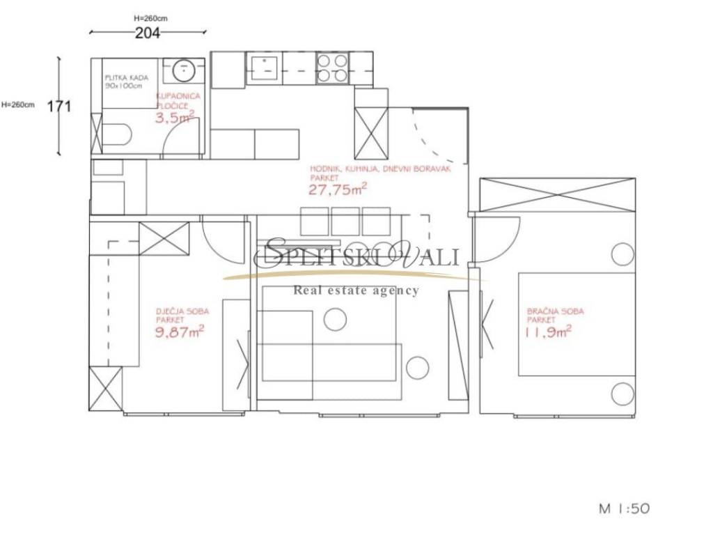 Nekretnina je opremljena najnovijim uređajima serije 8 Bosch, klimom Mitsubishi, norveškim radijatorom i dvijema led LG televizijama, te se prodaje kompletno namješten.