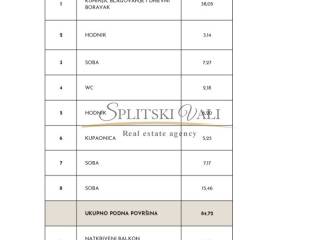 Sastoji se od hodnika, dnevnog prostora s kuhinjom i blagovaonicom, kupaonice, WC-a, tri spavaće sobe te natkrivenog balkona.