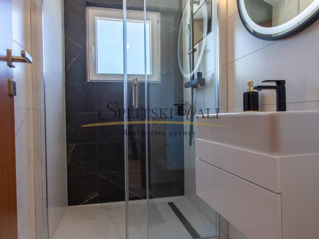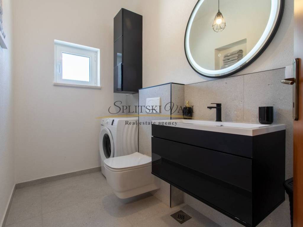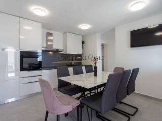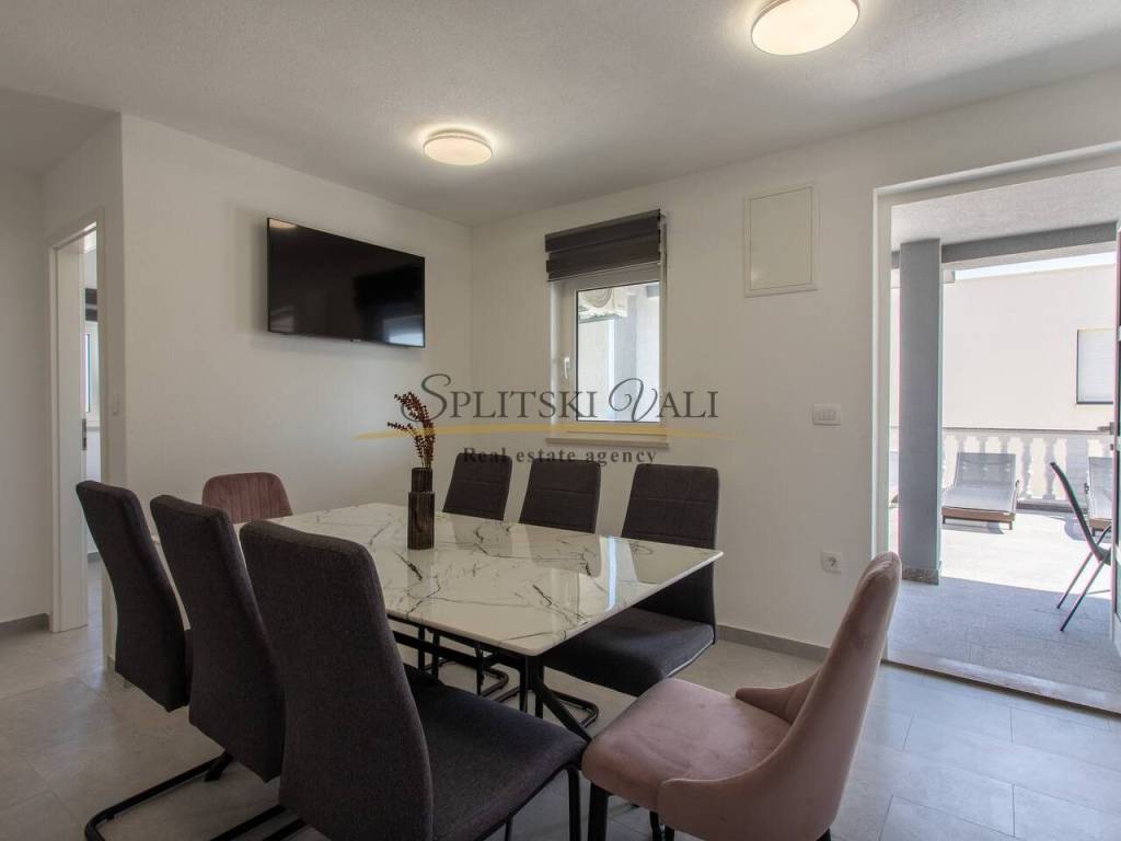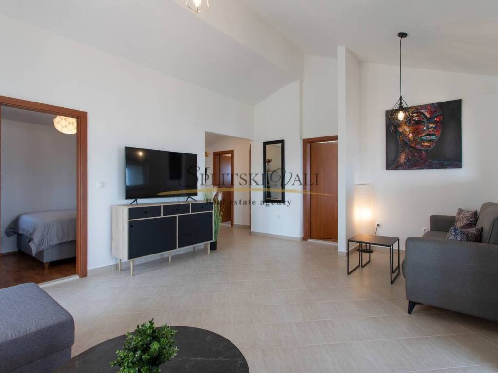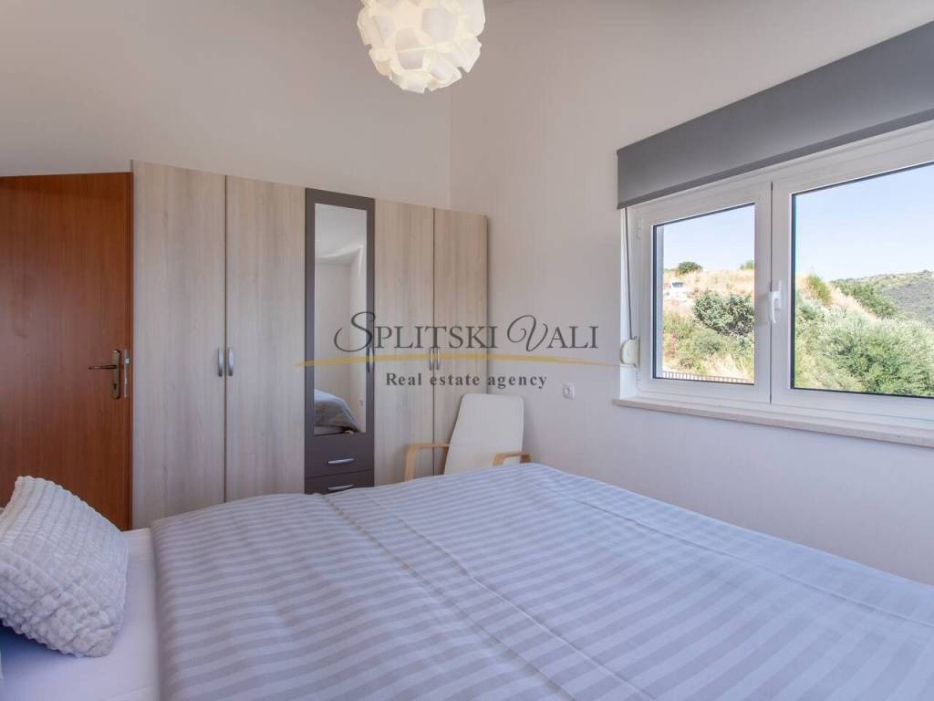 Kuća se sastoji od dva prostrana apartmana, što je čini idealnim izborom za obiteljski život ili kao izvrsnu investiciju u turistički najam. U prizemlju se nalazi dvosoban stan s terasom, dok se na prvom katu prostire još jedan dvosoban stan koji uključuje dvije spavaće sobe, kupaonicu, dodatni WC, hodnik, veliku kuhinju s blagovaonicom te prostrani dnevni boravak s izlazom na veliku terasu s koje se pruža prekrasan pogled na more.