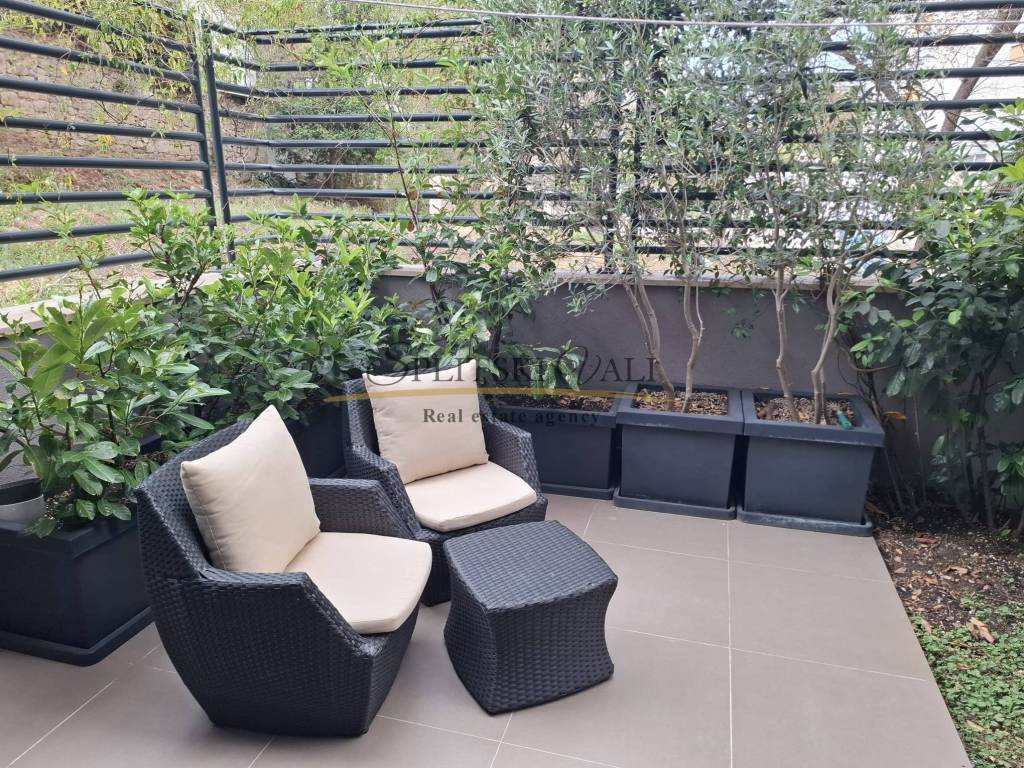 Dva privatna vrta (ukupno 40 m) bogato zasađena biljkama i voćkama vaša zelena oaza u gradu. Potpuno namješten kvalitetnim, pažljivo biranim namještajem rađenim po mjeri.