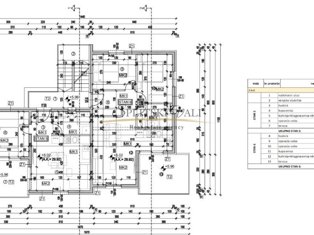 Na prodaju je dvosobni stan smješten na drugom katu nove stambene zgrade u izgradnji u Segetu Donjem. Stan se sastoji od hodnika, dvije udobne spavaće sobe, kupaonice s WC-om, praktične ostave te prostranog dnevnog boravka povezanog s kuhinjom i blagovaonicom, iz kojeg se izlazi na veliku terasu od 11,74 m, idealnu za opuštanje i uživanje u mediteranskom ambijentu. Ukupna unutarnja površina stana iznosi 51,7 m, a u cijenu je uključeno i jedno vanjsko parkirno mjesto.