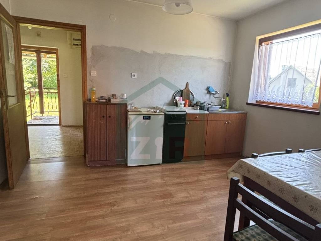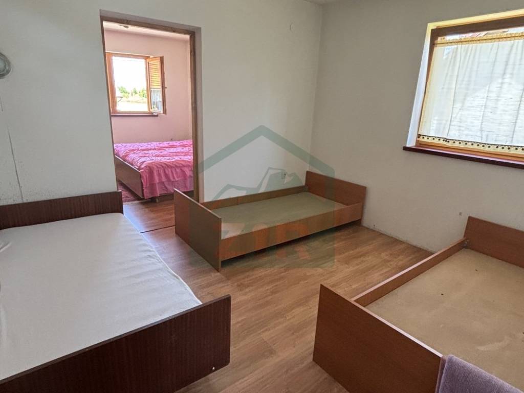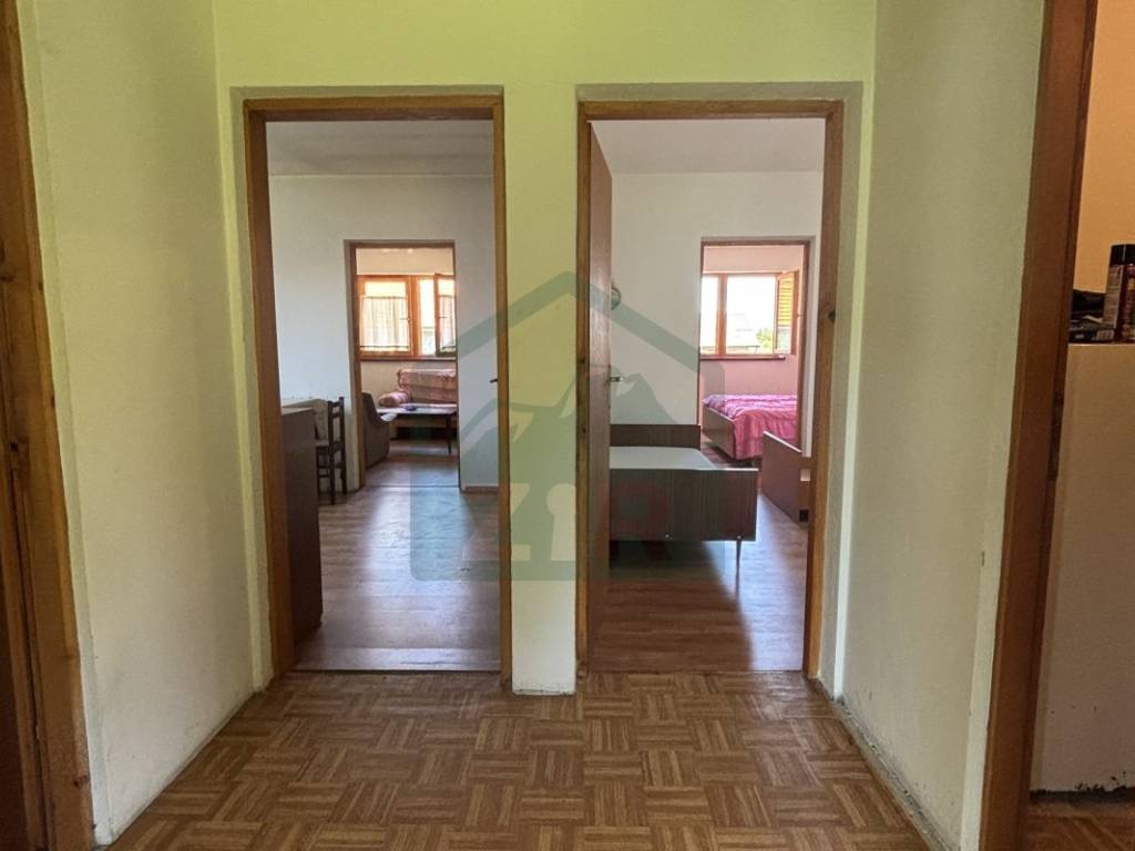 The joinery is wooden, with exterior shutters and protective elements in the basement and at the entrance. The house has a functional layout and, depending on the buyers preferences, is immediately move-in ready. Most of the existing furniture remains with the house, as well as a wood-burning stove for heating.