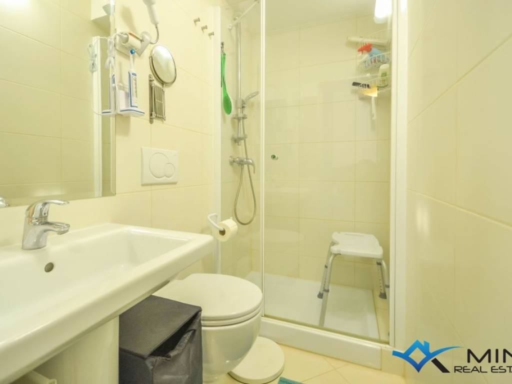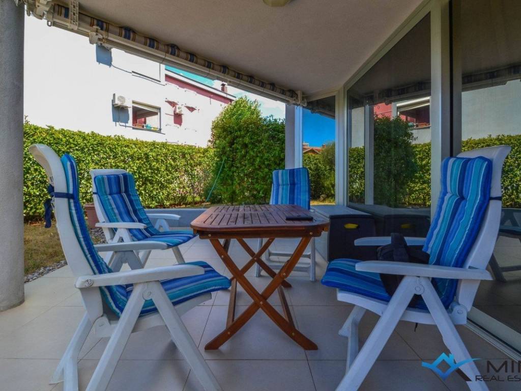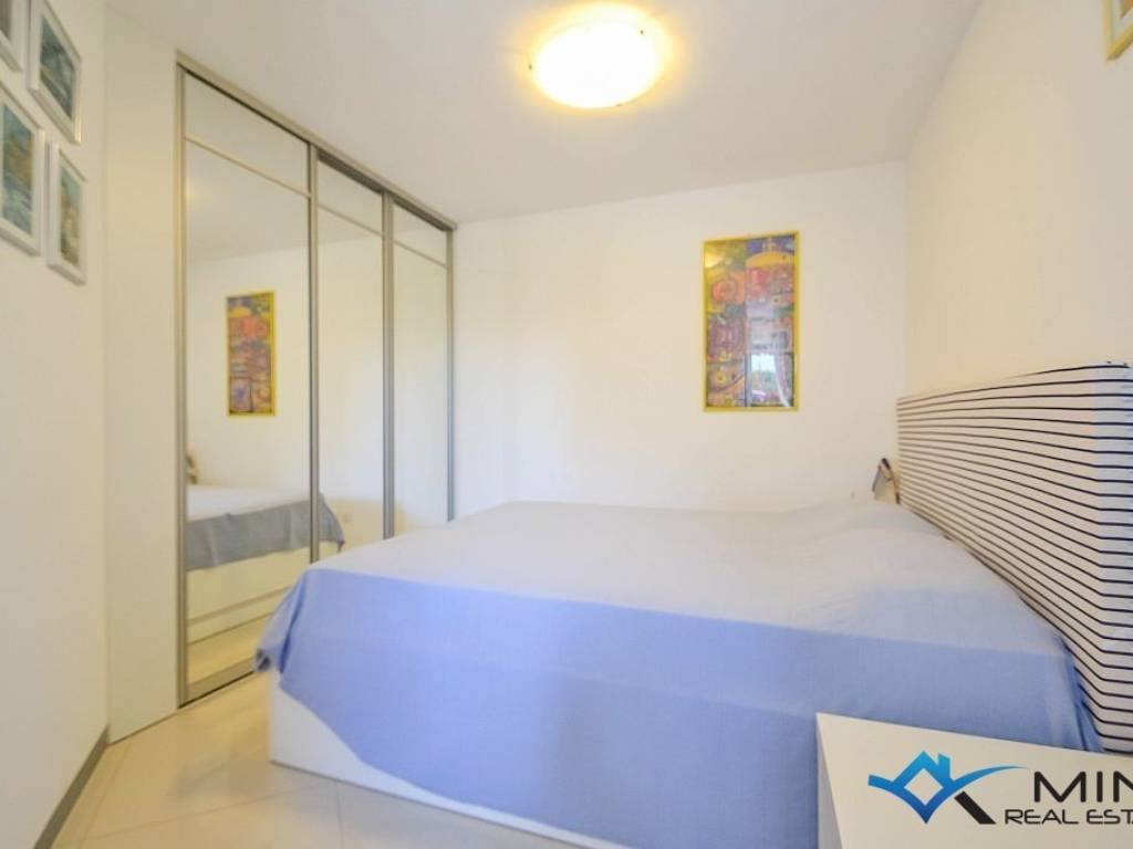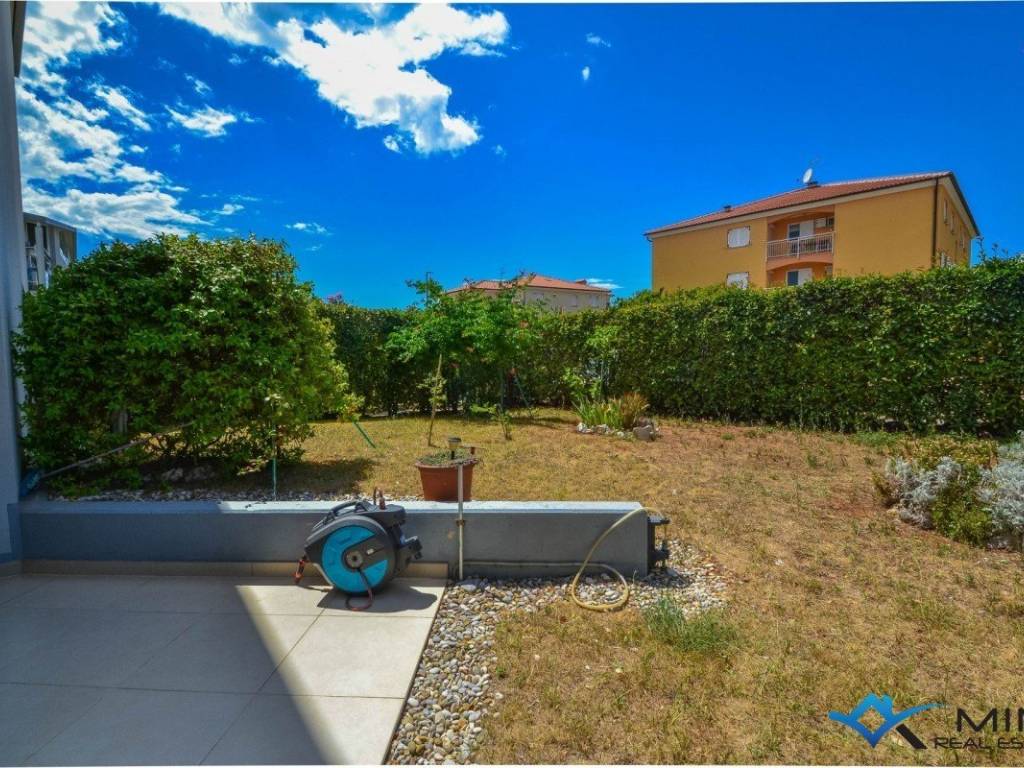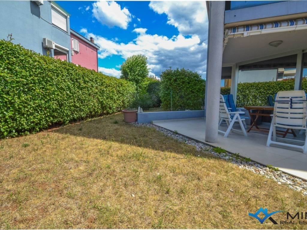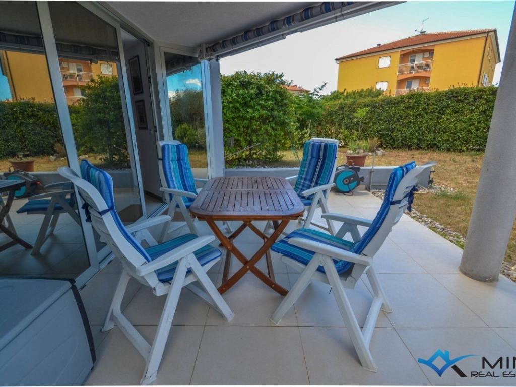 An apartment for sale on the ground floor of a residential building with an elevator, 800m from the sea and the beach, and 1000m from the center of Novigrad. It consists of 2 bedrooms, 2 bathrooms, a kitchen with a dining room and a living room with access to a covered terrace and a spacious garden of 160 m2. The apartment has 2 garage spaces and 4 storage rooms. The apartment is equipped with underfloor heating and air conditioning. The apartment is sold fully furnished and can be used for residential or tourist purposes.