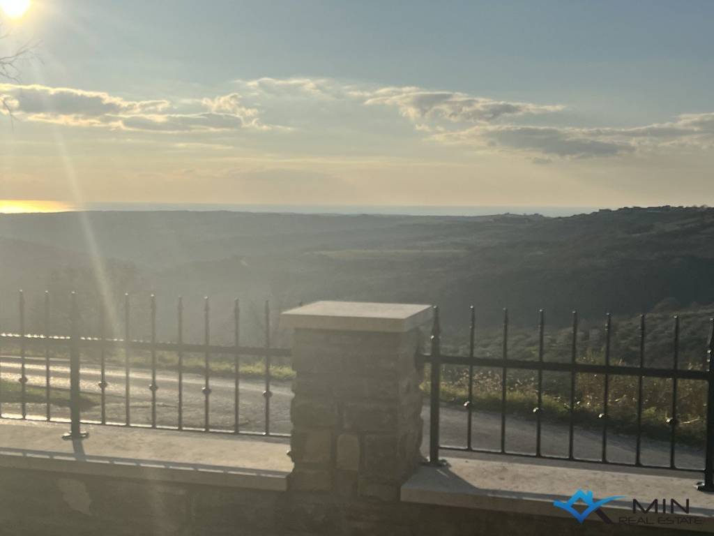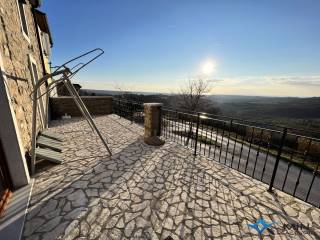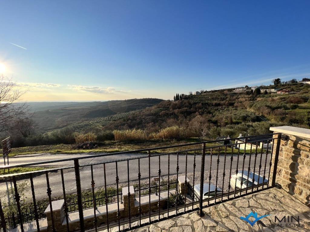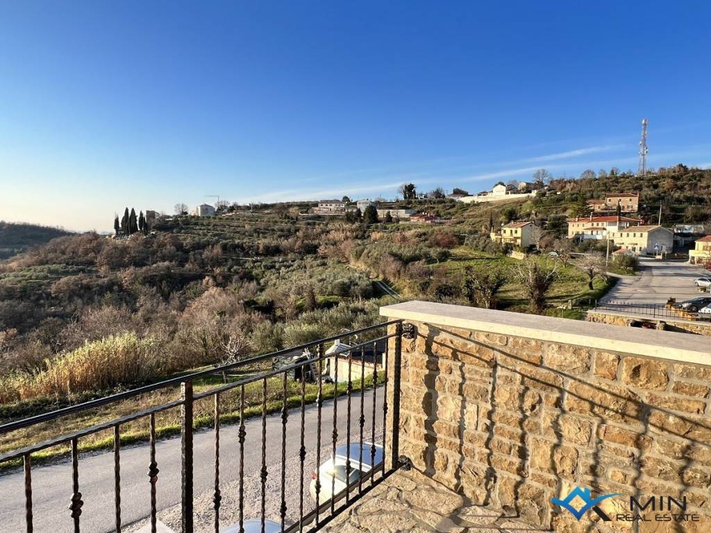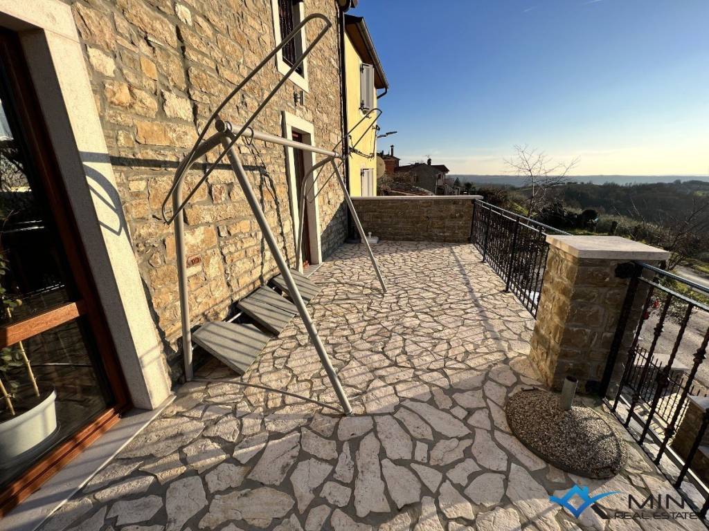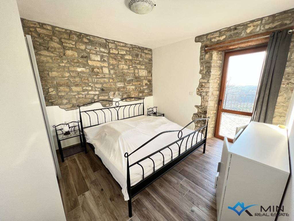 Istrian stone house for sale near Buje. The house is located in a quiet location, with a total square footage of 227 m2 and is divided into 3 apartments, 1 on each floor. Each apartment has its own private entrance, and on the ground floor there is an unfinished apartment with a beautiful terrace and view. On the 1st floor, there is a beautifully decorated apartment consisting of an entrance hall, bathroom, 2 bedrooms, kitchen with dining room and living room with access to the terrace with a beautiful view of the sea and nature. There is an unfinished apartment in the attic of the house. The house has great potential and can be used for residential or tourist purposes. The distance from the sea and the beautifully decorated beach is 15 km, and the distance from Buje is 5 km.