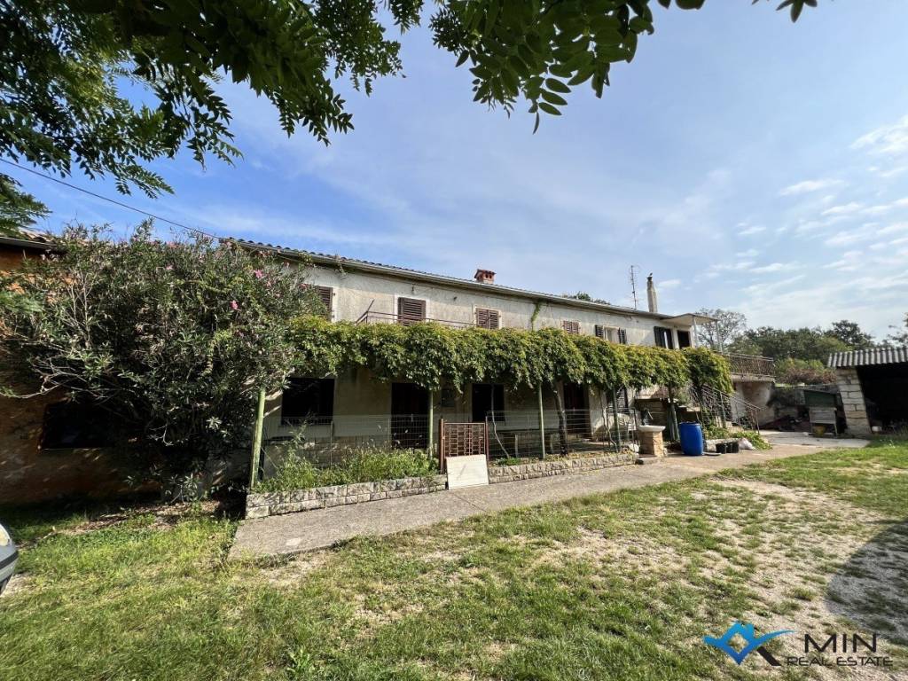 For sale is a family property in Plovania consisting of 4 terraced houses, 2 garages and 2 stone barns. The house with a yard has a total of 755 m2, of which 400 m2 is a yard, 100 m2 is a barn (ground floor + first floor) and 250 m2 is a house (ground floor + first floor). The property is located 5 km from the sea and 5 km from the Slovenian border crossing. Water and electricity are located on the land, and the mezzanine structure is made of beams, while the central part has a newly renovated roof. The property is located in a very quiet location, surrounded by nature and forests, and the entire plot is fenced with dry stone. The property can be a good investment for holiday homes, rural and rural tourism, catering facilities, etc.