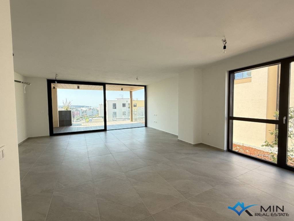 A luxurious apartment in a quality new building in Novigrad is for sale. The apartment is 900 m from the sea and a beautifully landscaped beach, and 1200 m from the city center. The apartment is located on the 1st floor of a building with an elevator, and the building has a total of 8 apartments. The apartment is equipped with electric underfloor heating, air conditioning and a fireplace. The apartment is equipped with 1st class ceramics, and the sanitary ware in the bathrooms are from well-known manufacturers. The apartment has 120 m2, of which 98.50 m2 is the residential part (entrance hall, storage room, wardrobe, 3 bathrooms, 3 bedrooms, kitchen with dining room and living room. The apartment has a covered terrace of 20.90 m2 (net 10, 45 m2) with a view of the sea, a storage room of 2.70 m2 (net 2.03 m2) and 2 parking spaces of 25 m2 (net 5 m2). The apartment can be used for residential or tourist purposes.