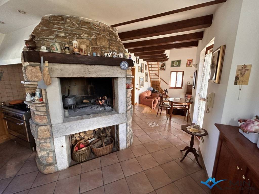 An Istrian house for sale near Buje in the village of Kaštel, not far from the Slovenian border. The house is located in a quiet location surrounded by nature. The house covers a gross area of 140 m2, and a net area of 120 m2. The house is divided into 2 floors and consists of a ground floor and a 1st floor. The ground floor has an entrance hall, bathroom, bedroom, kitchen with dining room and living room with a wood-burning fireplace. On the 1st floor there is a bedroom and a bathroom. The distance from the sea and a beautifully decorated beach is 8 km, and the center of Buje is 4 km away.