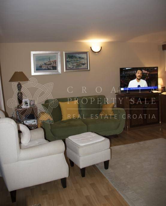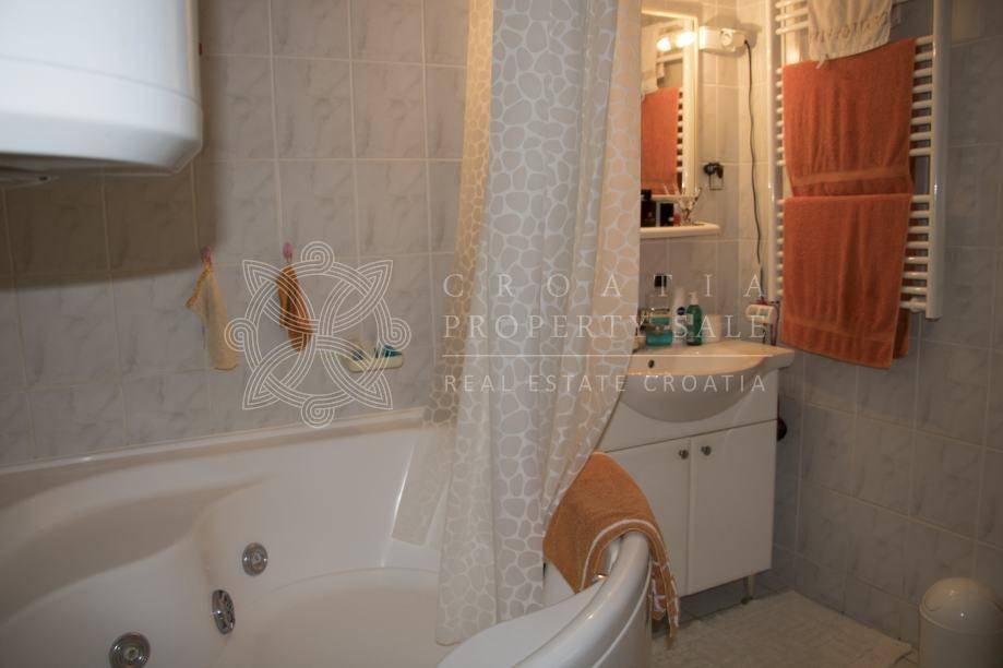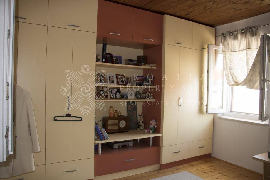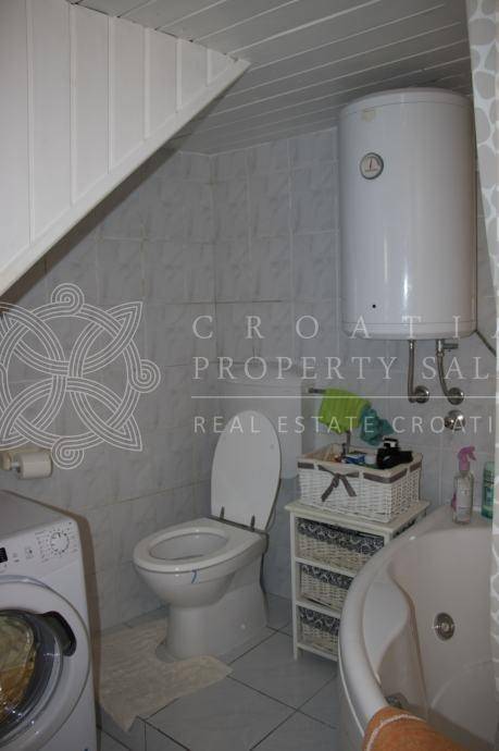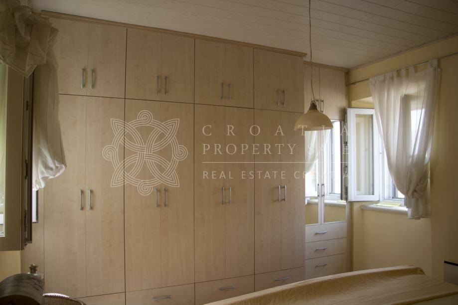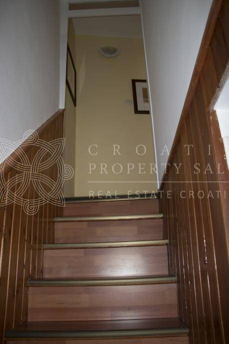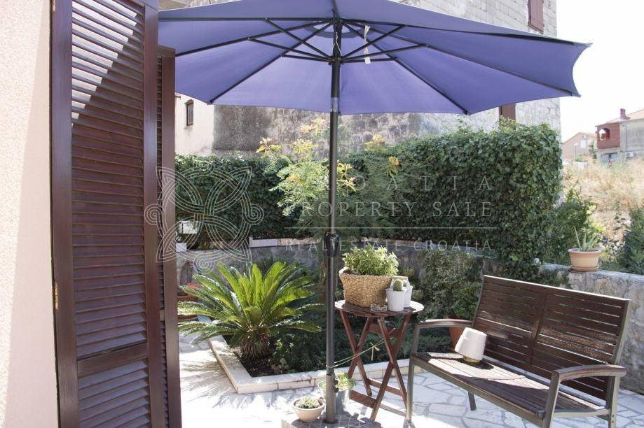 Interior and exterior of the house have been totally renovated. On the ground floor is a spacious living room with dining area and kitchen. There is also one bathroom on the ground floor of the house for sale. On the first floor is one bedroom with large built in closet while on the second floor are 2 bedrooms with built in closets. Rooms on the second floor have view of seafront promenade and the Adriatic sea. Outside is a terrace with a garden and 2 parking spaces. Price for Croatia Trogir sea view house for sale is 280 000 EUR.