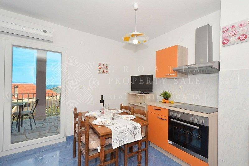 Croatia Trogir Ciovo sea view house with pool sale offers spacious living across three floors, with a total residential area of 300 square meters and a plot size of 600 square meters. The house features 5 apartments, plus an additional separate apartment.