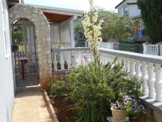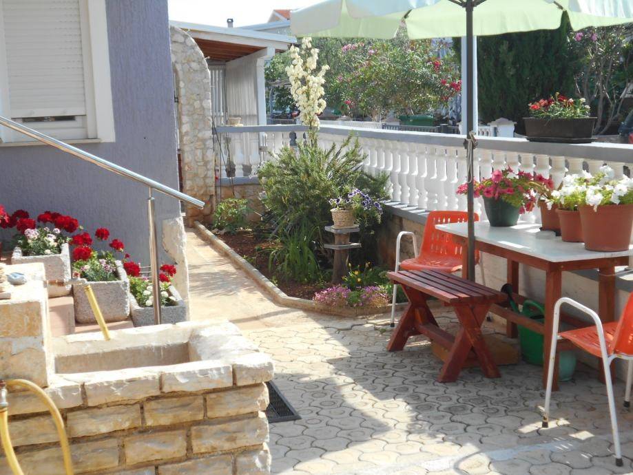 Oko kuće se nalazi privatno dvorište površine 189 m2, a sadržava vanjski tuš, roštilj u kamenoj kućici, ležaljke, natkrivenu verandu te parking sa tri parkirna mjesta.