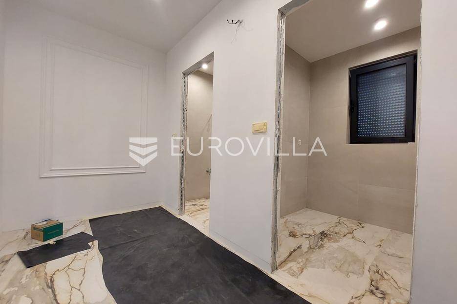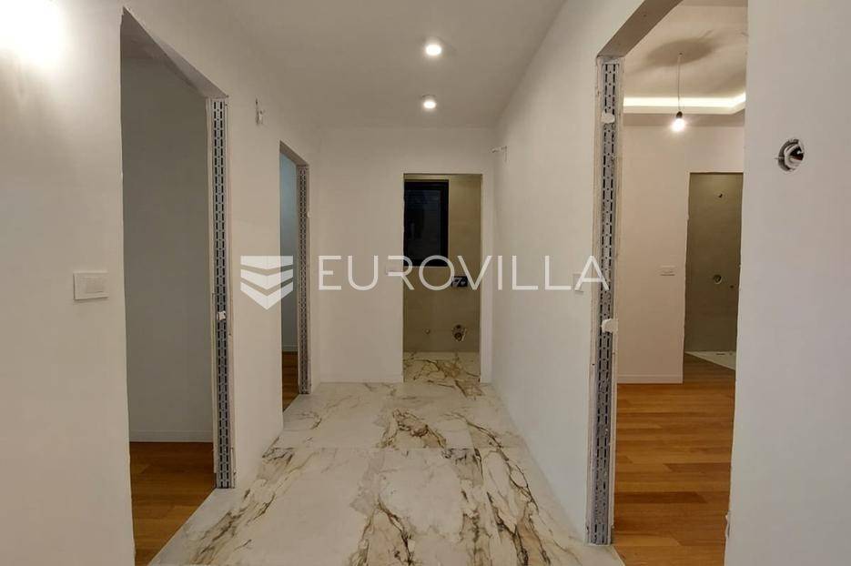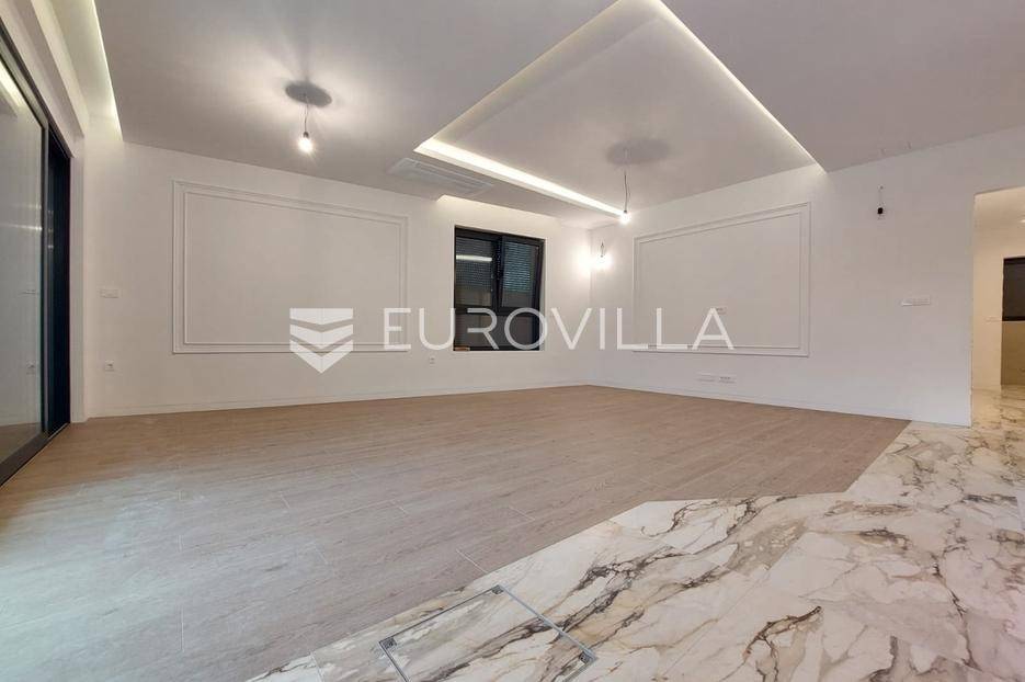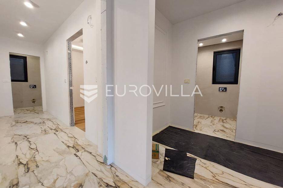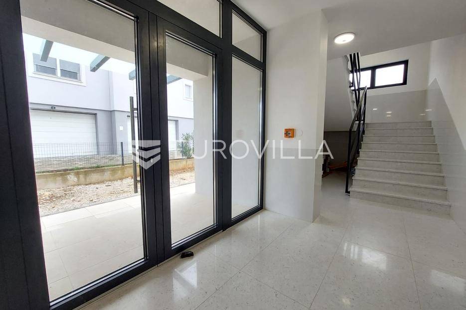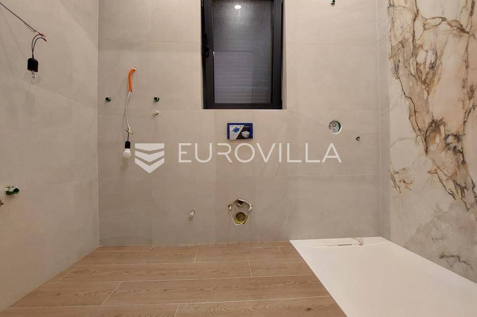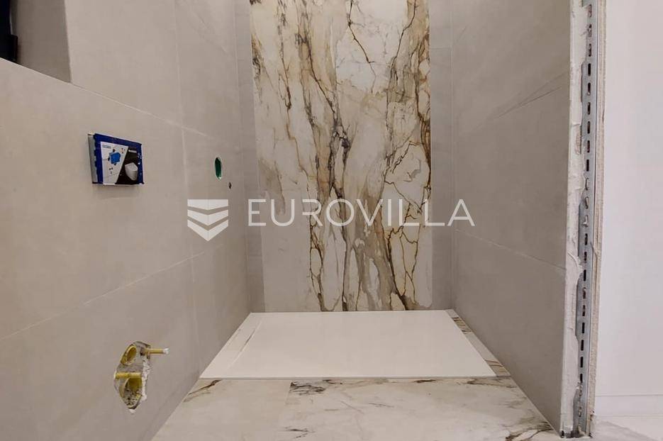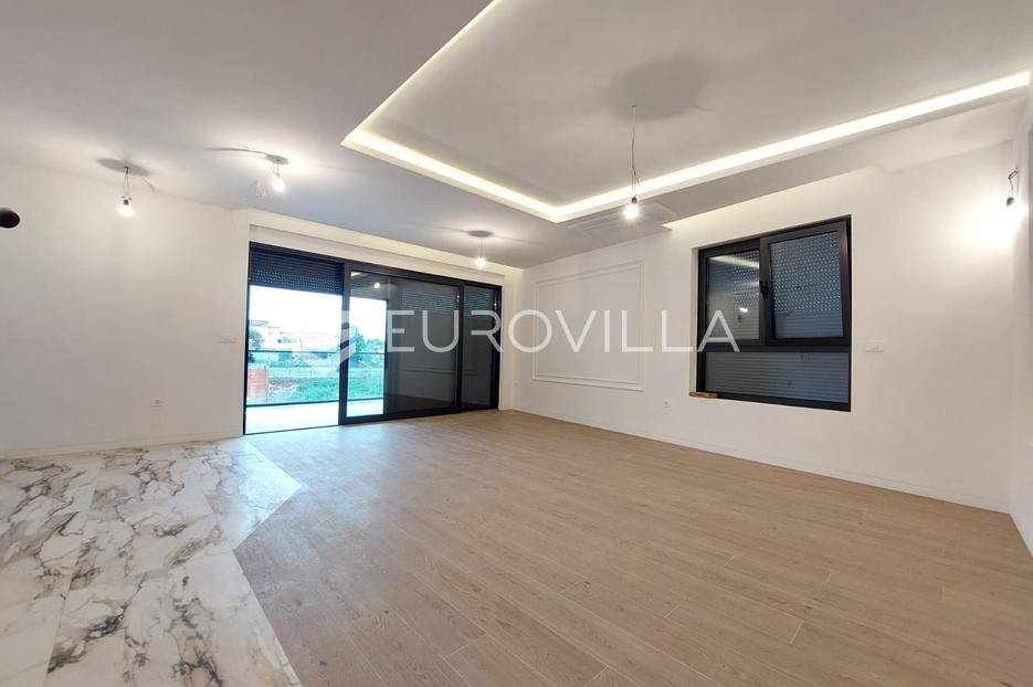 Prodaje se iznimno atraktivan stan na prvom katu moderne novogradnje, ukupne površine 120 m², idealan za sve koji traže spoj vrhunske kvalitete, udobnosti i suvremenog dizajna. Već pri ulasku dočekuje vas prostran, elegantan dnevni boravak povezan s kuhinjom, iz kojeg se izlazi na veliku terasu koja pruža osjećaj potpune privatnosti i mira. Terasa je osmišljena kao ekstenzija životnog prostora - pripremljena za ljetnu kuhinju, s dovedenom strujom i vodom te priključkom predviđenim za jacuzzi.Stan je promišljeno organiziran te uz gostinjski WC nudi i odvojeni vešeraj, dok je noćna zona diskretno odijeljena. Master spavaća soba ima vlastitu kupaonicu, a uz nju se nalaze još dvije udobne spavaće sobe i dodatna kupaonica. U sobama je postavljen kvalitetan parket, dok ostatkom prostora dominira vrhunska keramika koja naglašava moderan stil interijera.Cjelokupna stolarija izvedena je u aluminiju s troslojnim staklima, termoizolacijskim roletnama i komarnicima, a rolete su električne. Kroz stan je provedeno pet zona podnog grijanja na struju, svaka prostorija zasebno upravljiva. Klima-uređaji su organizirani kroz četiri zone - u dnevnom boravku nalazi se centralna jedinica u stropu, dok su u svakoj spavaćoj sobi postavljeni Samsung Wind-Free uređaji. Dodatna ugodnost je priprema za električne vodilice za zavjese.Stanu pripadaju dva parkirna mjesta, a već je izvedena instalacija za ugradnju električnog punjača, direktno spojena na brojilo stana.U cijenu je uključen PDV, što znači da kupac ne plaća porez na promet nekretnina.Za sva dodatna pitanja ili dogovor oko razgledavanja, stojimo vam na raspolaganju.