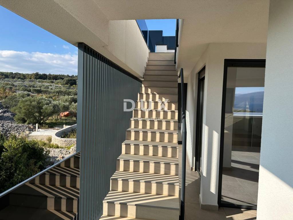 In a quiet part of the town of Krk, about 400 meters as the crow flies from the sea, an exclusive duplex apartment is for sale that combines modern design, top-quality construction and impressive sea views. Located on the first and second floors of a small building with a total of four residential units, this apartment offers exceptional privacy and all the amenities you expect from a luxury property.