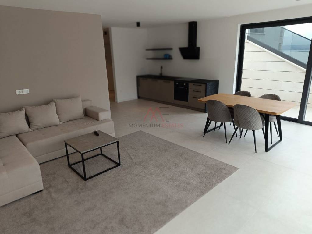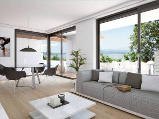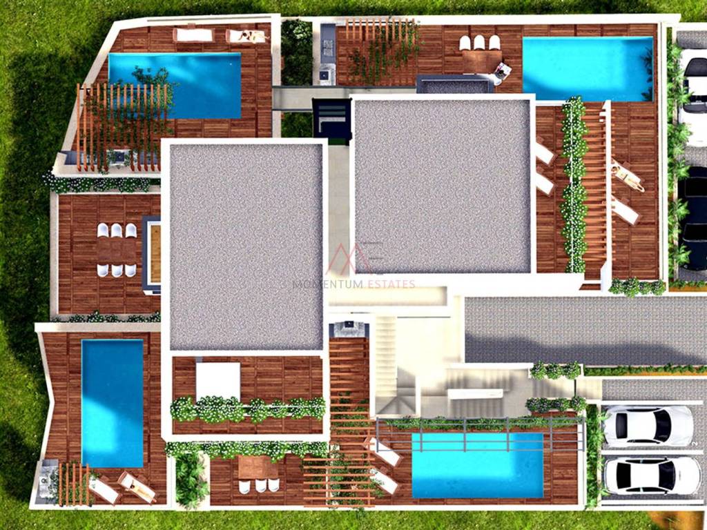 The apartment consists of a living room with kitchen and dining area in the "open space" concept, two bedrooms with private bathroom, loggia and terrace with private pool.