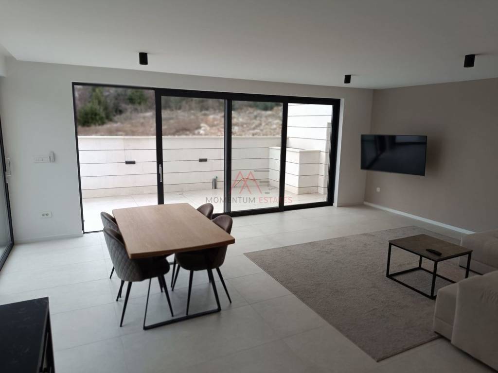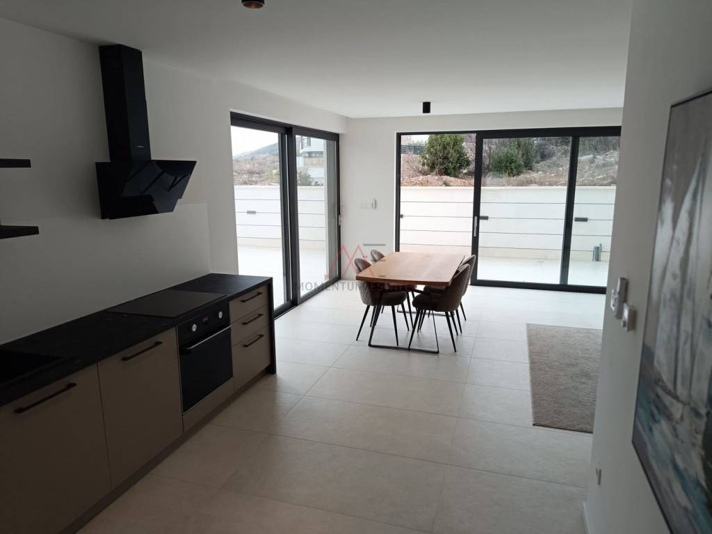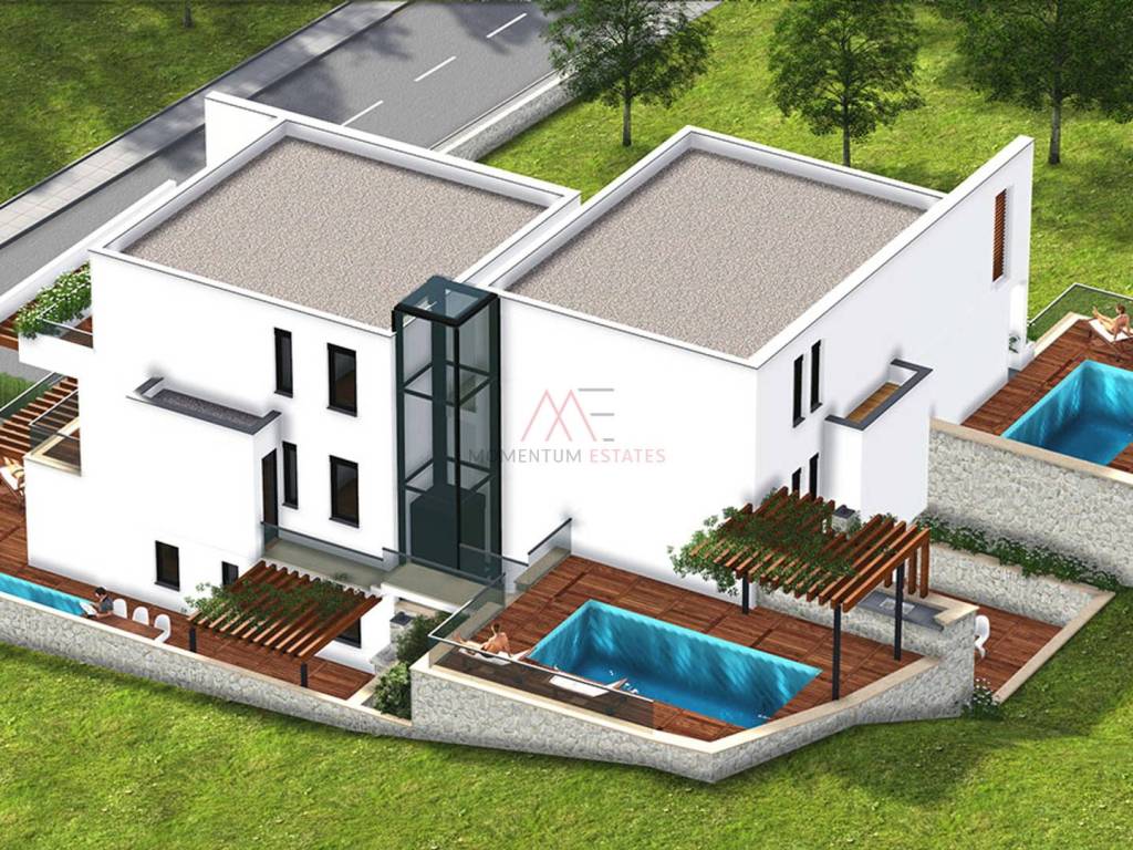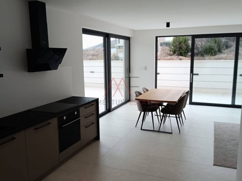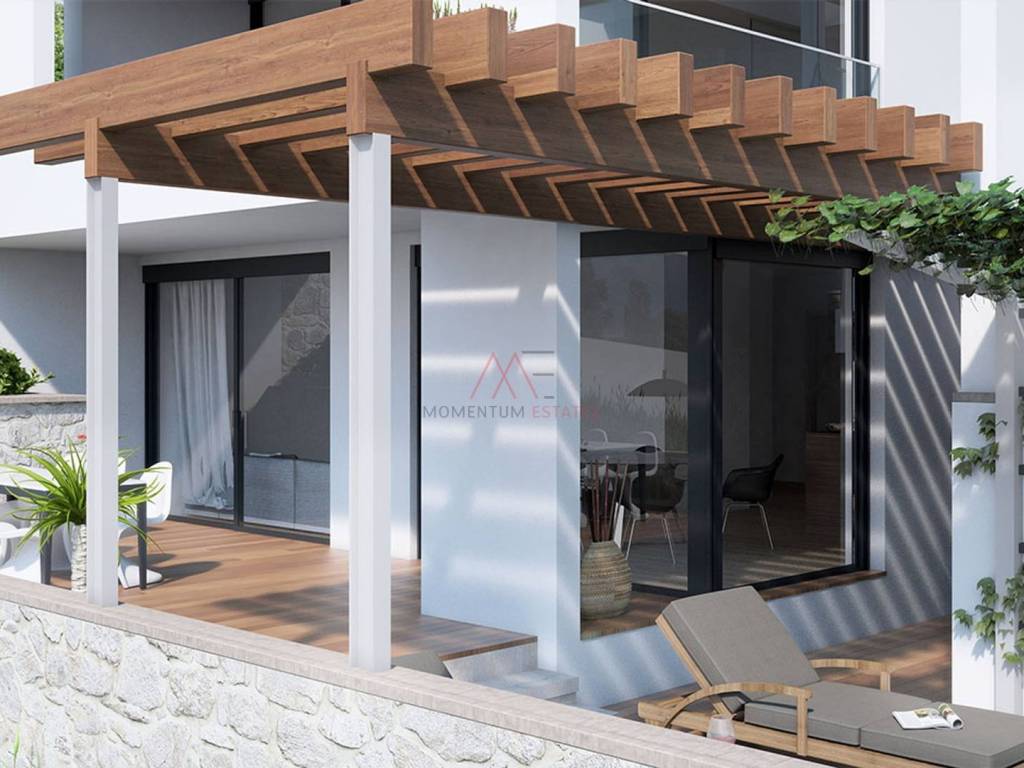 In a detached building with a flat roof, aluminum joinery (large glass walls), superior thermal insulation, ceramics and high quality wooden floors, we are offering an apartment on the ground floor with a separate entrance. Complete privacy is complemented by a private pool with courtyard and garden, and a beautiful view of the sea and the surrounding islands and mountains is provided from the private terrace.