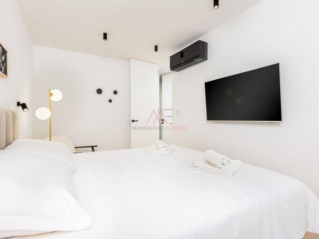 Na mirnoj lokaciji u novogradnji dovršenoj 2022.godine iznajmljuje se trosobni stan s dnevnim boravkom, dvije kupaone, kompletno namješten (trenutno je u fazi namještanja). Podno plinsko grijanje, vrhunski klima uređaj, kuhinja po mjeri opremljena Miele aparatima, sustav pametnog upravljanja klimatizacijom i grijanjem...Svi stanovi na korištenje imaju zajedničke prostorije, teretanu, dječju igraonicu i vanjski grijani bazen sa sunčalištem. Zgrada ima lift i privatan parking. U izgradnji i opremanju su korišteni najmoderniji materijali čime je osigurana energetska učinkovitost zgrade i niski troškovi stanovanja.U cijenu najma uključen PDV. Režijski troškovi plaćaju se prema vlastitoj potrošnji.Dostupno od 1.9.2025.