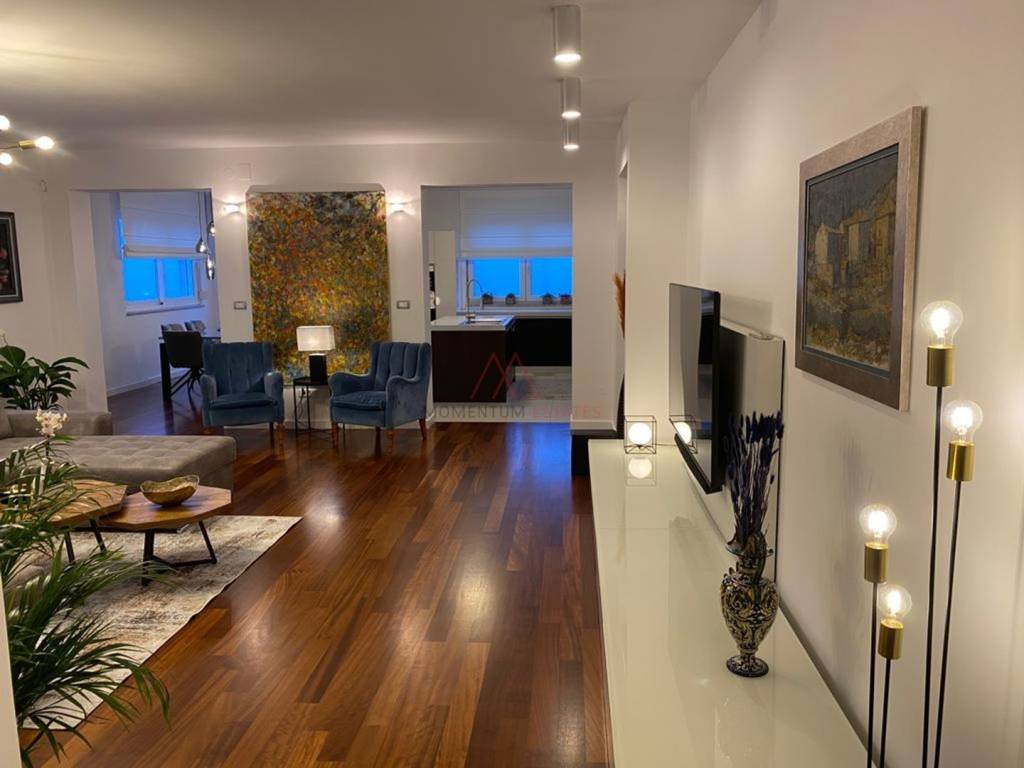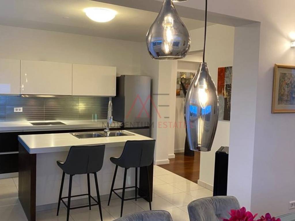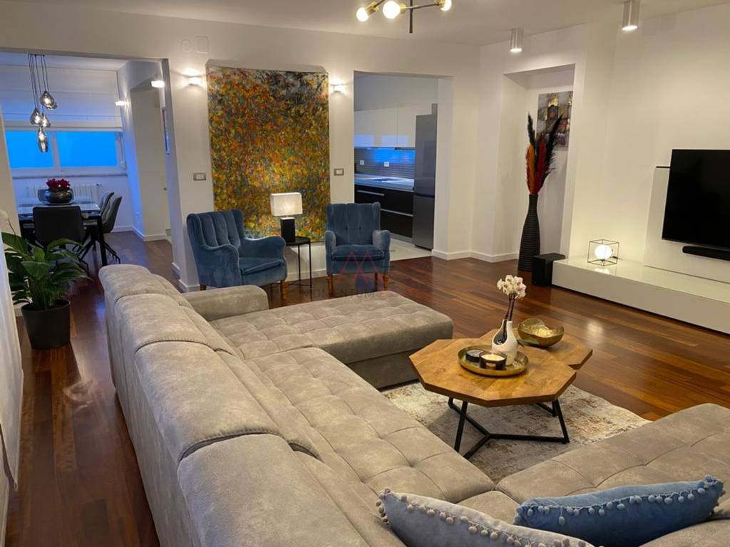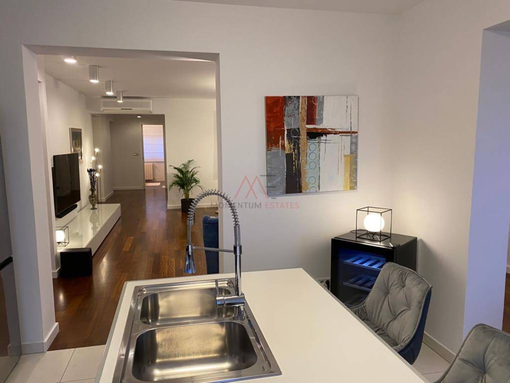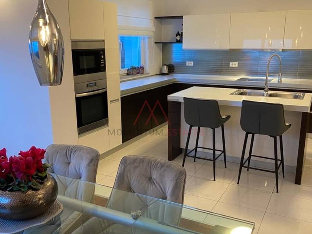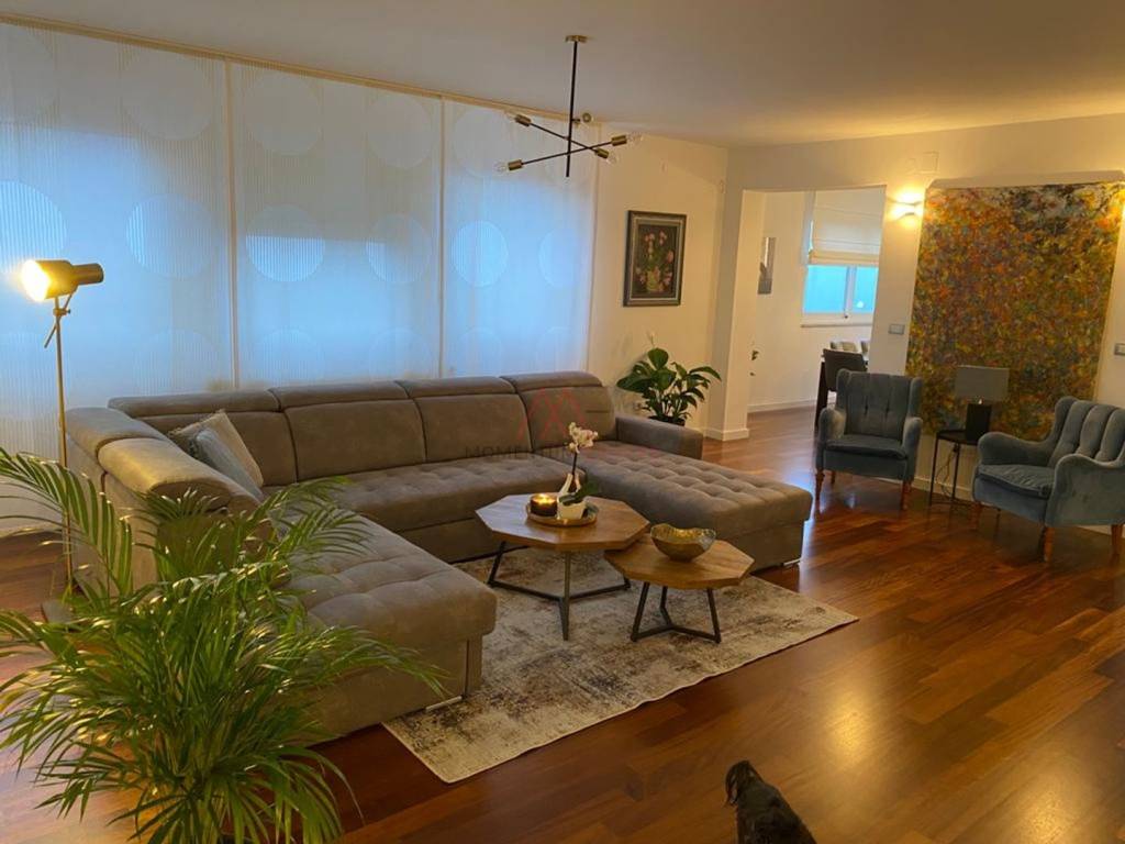 We offer a newly decorated apartment srface area of 142m2 with a garage and a panoramic view of Kvarner bay. The apartment is located in an excellent newer building, at the end of a dead-end street, which is why it is very peaceful and relaxing. It is furnished with top quality pieces of furniture, completely new and unused. The design is very well thought out both in construction and in furnishing. One of the bedrooms has an en-suite bathroom, while the third bedroom can be arranged according to your wishes. The apartment is being rented long-term and a security deposit in the amount of one month's rent is mandatory.