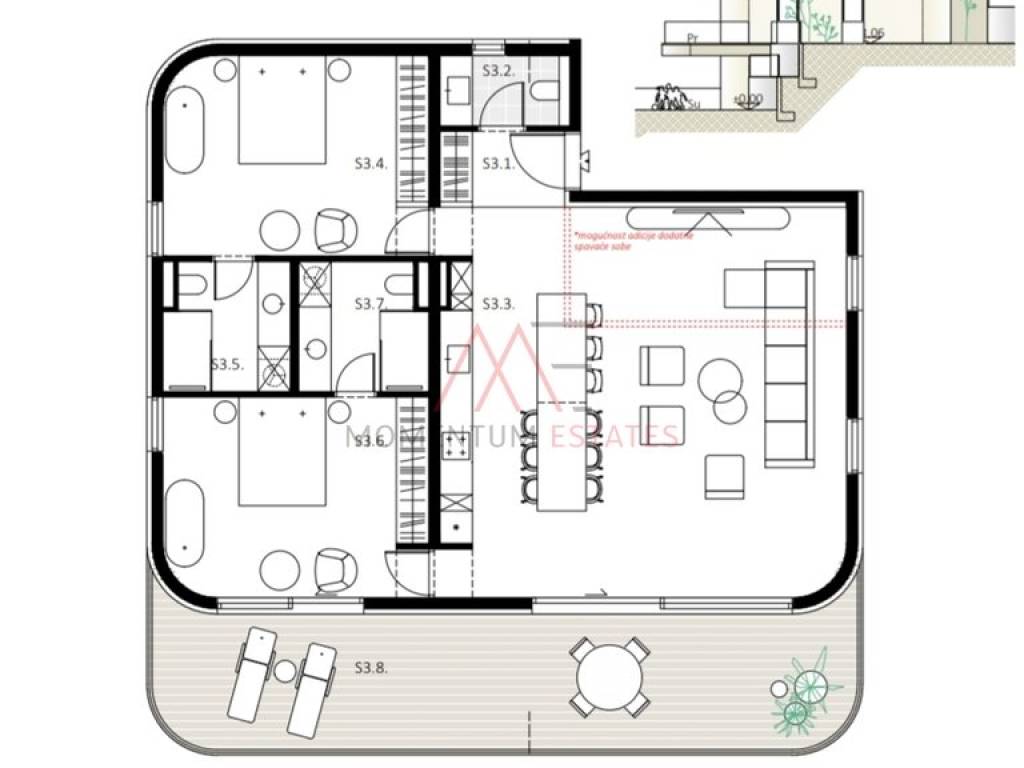 Završetak radova očekuje se do 1.7.2023.. Apartman se prodaje nenamješten.