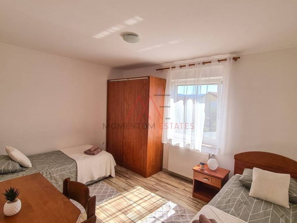 Iznajmljuje se novouređeni 3sobni stam s dnevnim boravkom, površine 85m2 na 1.katu stambene zgrade. Stan se proteže kroz cijelu etažu, a sastoji se od kuhinje, dnevnog boravka, 3 spavaće sobe, 2 kupaonice (jedna s kadom druga s tušem), hodnika i balkona. Parking u dvorištu zgrade. Etažno plinsko grijanje. Cijena za obitelj 800€, mogućnost za do 6 radnika 1500eur plus režije. Polog obavezan.
