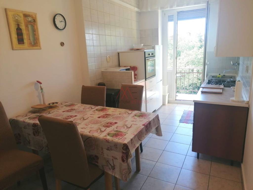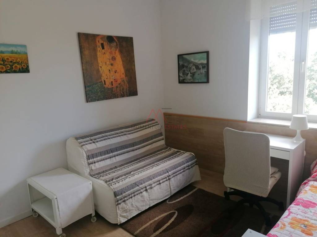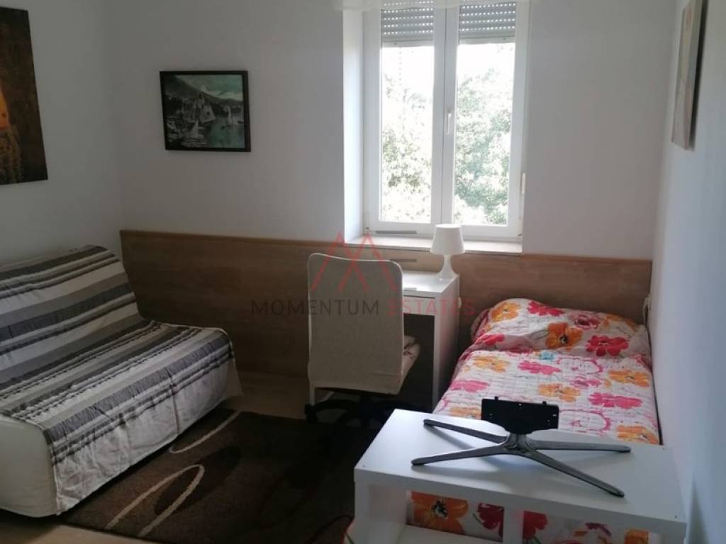 Prodaje se stan u odlično održavanoj zgradi, peterokatnici, sa novom fasadom. Stan se sastoji od dvije spavaće sobe, kuhinje s blagovaonom, kupaone, balkona te drvarnice. Sa balkona zapadne orjentacije pruža se otvoreni pogled na more, a iz jedne od soba istočne orjentacije također se vidi more i otok Krk. Obzirom na tlocrt i nosivi zid, moguće je i prenamijeniti tlocrt prema vlastitim željama. Stan je namješten i useljiv te se kao takav i prodaje. Stanje je odlično, održavano te je odlična prilika za život ali i za najam obzirom na blizinu sadržaja, centra grada i fakulteta. Najmještaj prema dogovoru.