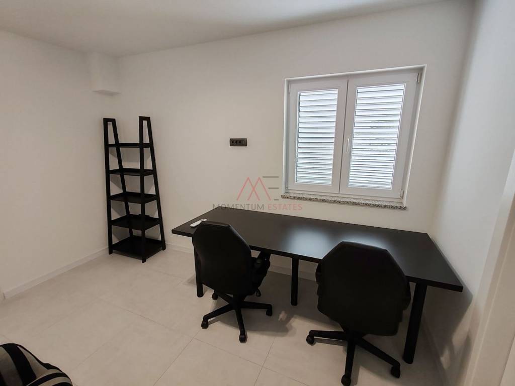 Iznajmljuje se dvosobni stan s dnevnim boravkom. Stan ima dvije spavaće sobe od kojih je jedna trenutno uređena u radnu sobu, kuhinju, kupaonu, dnevni boravak, praonu. mali balkon sa ljuljačkom i roštiljem. Optički internet najveće brzine proveden u stan, svaka prostorija ima klimu, parking osiguran. Režije prema vlastitoj potrošnji. Polog obavezan. Nije prilagođeno za obitelji sa djecom. Manji pas dozvoljen uz garanciju.
