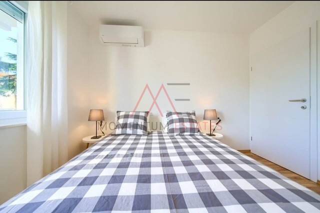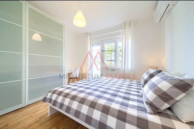 Iznajmljuje se dvosobni stan s dnevnim boravkom i balkonom, na prvom katu u peterokatnici na Donjoj Vežici. Stan je kompletno renoviran, u njemu je nova unutarnja i vanjska stolarija, protuprovalna vrata, postavljen je lakirani hrastov parket u sobe, kao i kompletno nova keramika. Sve instalacije u stanu su nove! Svaka soba je u stanu klimatizirana (tri klima uređaja), a u dnevnom boravku i kuhinji ugrađeno je i podno grijanje. Podno grijanje ima digitalni termostat kojim je moguće programirati vrijeme grijanja. Klima uređajem može se upravljati na daljinu, tako da uvijek možete doći kući u toplo/hladno, odnosno upravljati klimom preko aplikacije na mobitelu. Nalazi se u vrlo mirnoj peterokatnici, okružen zelenilom, a oko zgrade postoji više besplatnih parkirališta. Stan nije u sustavu Energa, tako da ima vrlo niske režijske troškove, odnosno plaća se prema potrošnji. Posjeduje i vlastiti vodomjer, a pričuvu plaća najmodavac.