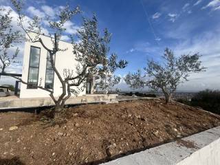 The property is characterized by high-quality construction: electric underfloor heating in the living room and bathrooms, air conditioning in all rooms and the living room, high-quality aluminum joinery with mosquito nets and electrically controlled roller shutters, security doors, and preparation for solar and photovoltaic power plants.