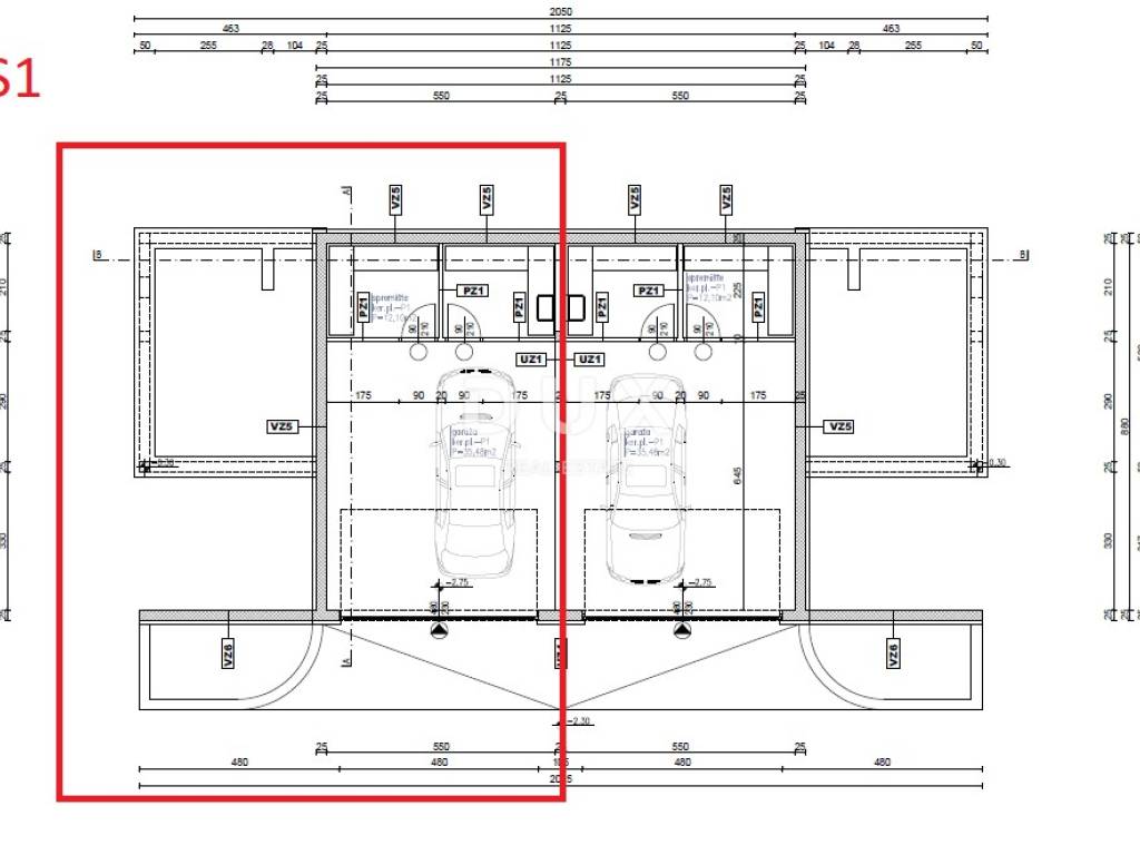 BASEMENT - In the basement there is a garage with a machine room, a bathroom and an additional room that can be used as storage, all together with a total area of 50m2.