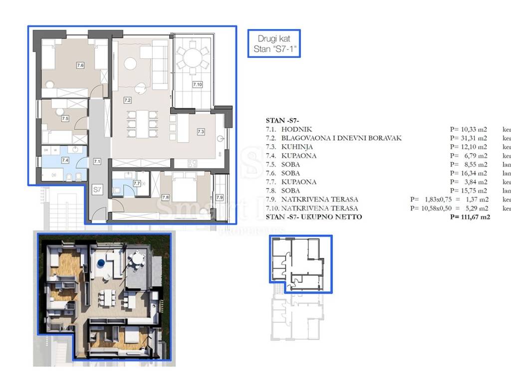 The listed price refers to a completely finished apartment on a turnkey basis, without furniture. The price includes VAT, the buyer is exempt from paying real estate tax. In the case of purchasing from a company registered in Croatia, a full VAT refund is possible after the purchase.