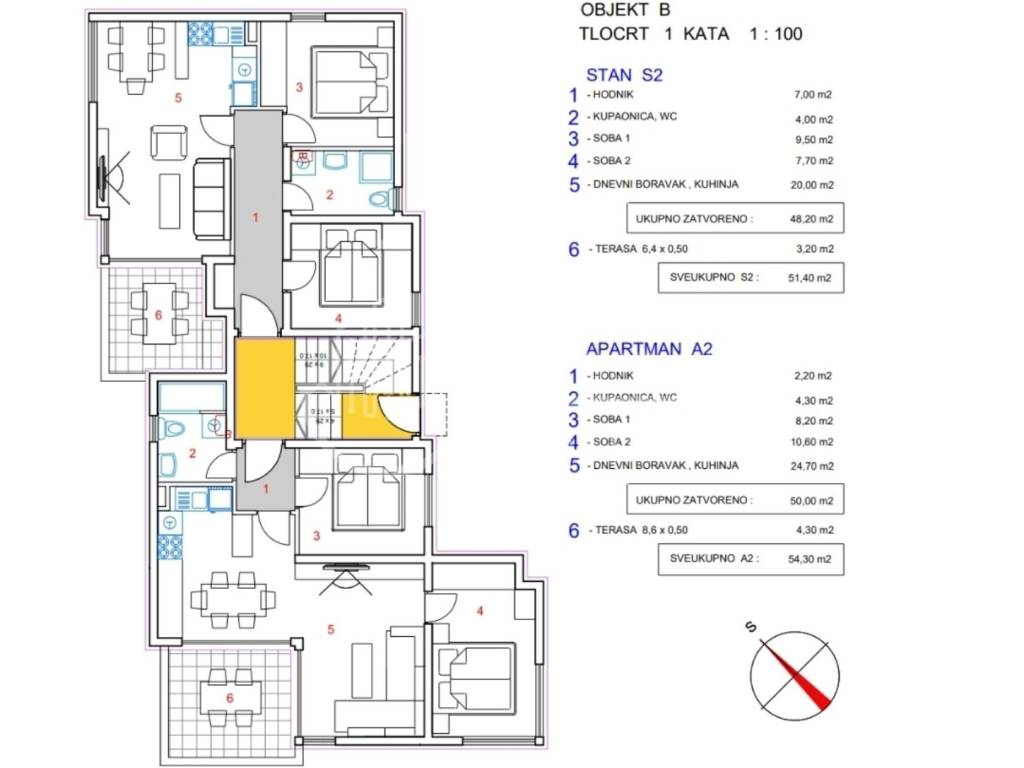 NOVOGRADNJA II RED DO MORA 3-SOBNI APARTMAN S TERASOM (A2 OBJEKT B), NOVALJA Prodaje se trosobni apartman (A2 objekt B), obračunske površine 54,30 m, smješten na 1. katu moderne novogradnje u ulici Put Lokvice drugi red do mora, svega 30 metara od plaže. Raspored Apartman se sastoji od: