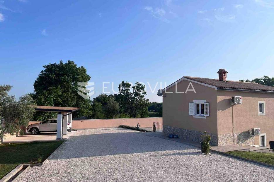 U malom mjestu nedaleko Barbana, smjestila se lijepa nova samostojeća kuća od 200 m2 na prostranom zemljištu od 850 m2. Ova izuzetna nekretnina nudi savršenu kombinaciju udobnosti i privatnosti idealna za one koji traže miran život.Kuća se sastoji od prizemlja i prvog kata; svaki kat je stan za sebe, pružajući fleksibilnost i mogućnost odvojenog stanovanja. Prizemlje je koncipirano kao otvoren prostor koji obuhvaća ulaz, kuhinju i dnevni boravak. Uz to, tu je i udobna spavaća soba, kupaonica te natkrivena terasa koja poziva na uživanje u svježem zraku i prekrasnom pogledu na zelenilo.Na samoj terasi smještena je relax zona s roštiljem, idealna za ljetne večeri i druženja s prijateljima. Bazen u produžetku terase pruža osvježenje u vrućim ljetnim danima, dok zelena površina oko bazena nudi prostor za opuštanje i igru. Prvi kat također nudi prostrani dnevni boravak s kuhinjom, kupaonicu i dvije udobne spavaće sobe, pružajući dovoljno prostora za cijelu obitelj ili goste.U dvorištu se nalazi parking za nekoliko automobila, uključujući i dva natkrivena parking mjesta, što osigurava praktičnost i sigurnost za Vaša vozila. Cijela kuća je klimatizirana, što omogućuje ugodan boravak tijekom cijele godine.Ova kuća je idealna za one koji žele pobjeći od gradske vreve i uživati u mirnom životu u prelijepoj prirodi. Barban i okolica nude brojne mogućnosti za rekreaciju, istraživanje i uživanje u bogatoj kulturnoj baštini Istre. Blizina Barbana osigurava jednostavan pristup svim potrebnim sadržajima, dok istovremeno zadržavate privatnost i mir.Za dodatne informacije kao i dogovor oko termina razgledavanja slobodno nam se obratite - stojimo Vam na raspolaganju kako bismo Vam omogućili da doživite ovu izvanrednu nekretninu uživo.