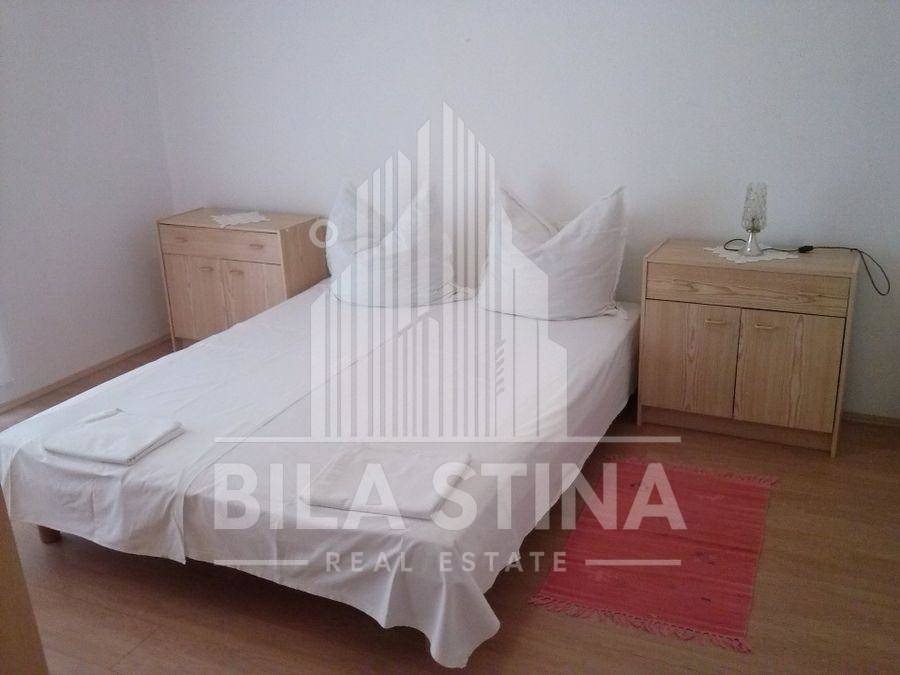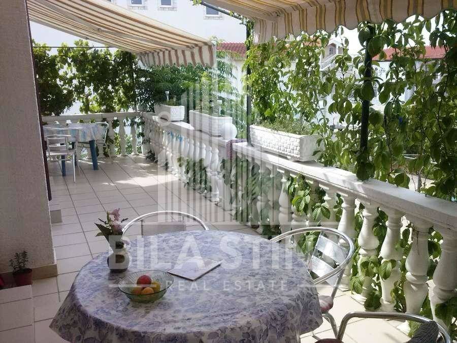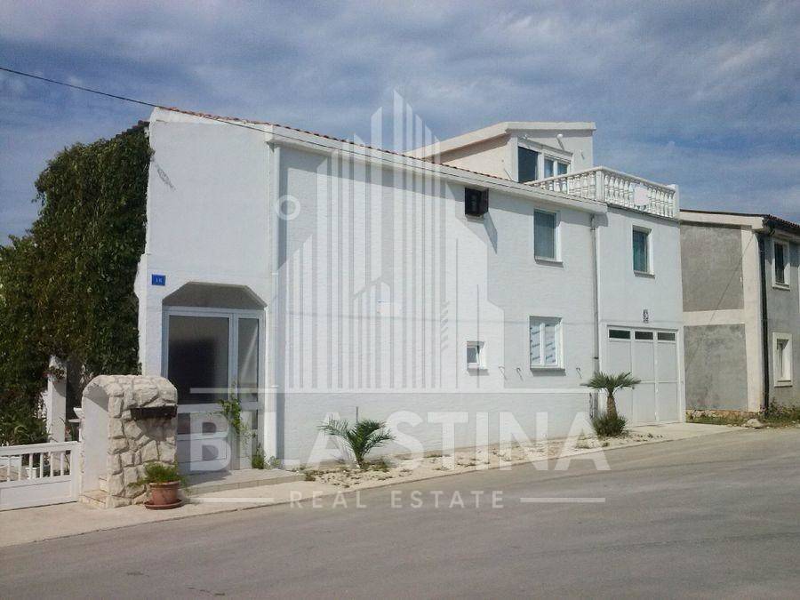 Vir, kuca sa 6 stanova i garažom. Blizina centra, neposredno uz trgovinu. 300m od plaže. Tri apartmana sa 2 spavaće sobe. Dva apartmana sa 1spavaćom sobom . 1 studio apartman. Lijepe velike terase. Uređena oućnica. Velika garaža. Parcela 416m2. 8 parkirnih mjesta. Po dogovoru moze se povoljno kupiti i susjedna parcela od 270m2 (uz kupnju cijele kuće).