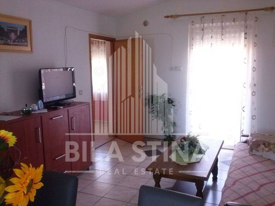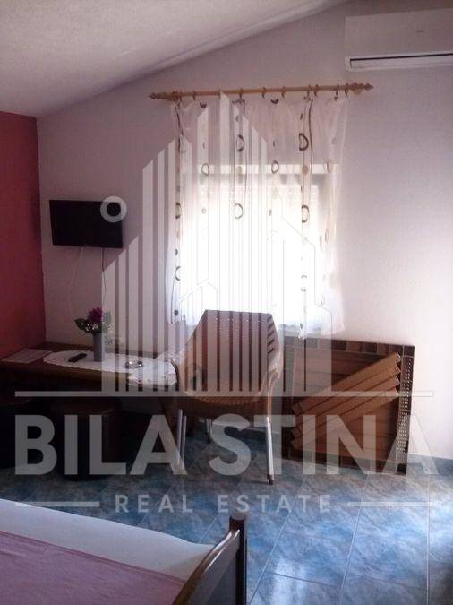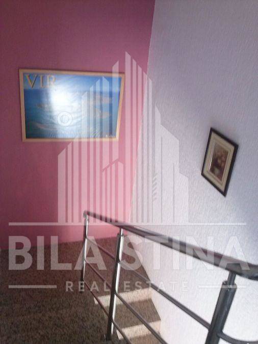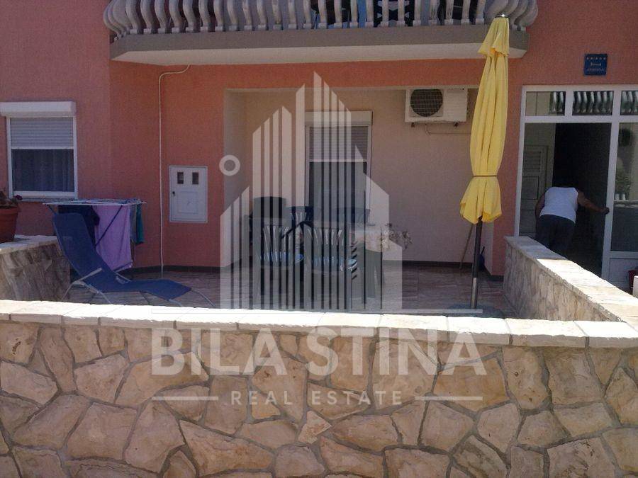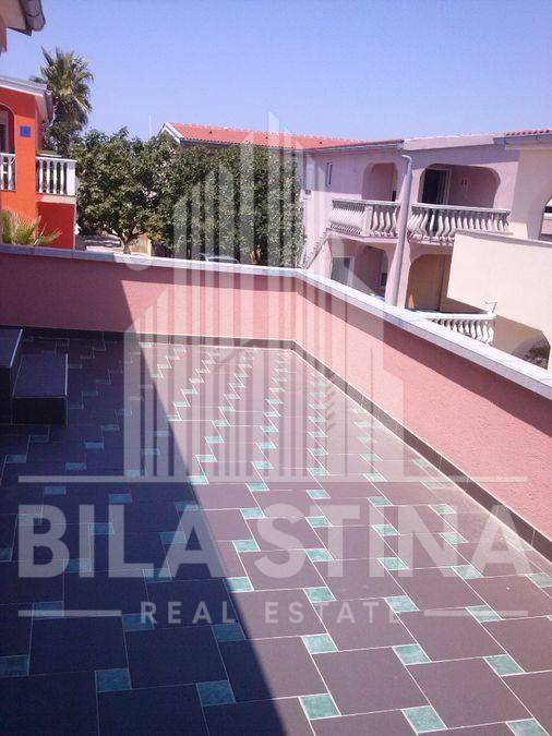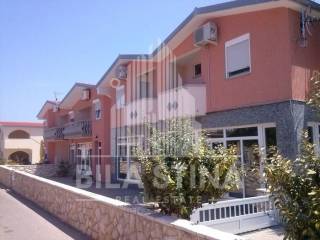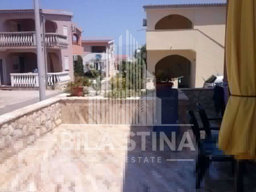 Vir, stambeno-poslovni objekt. U prizemlju objekta, uz prometnicu, je poslovni prostor idealan za tihu djelatnost (npr. trgovinu) površine cca 150m2. Objekt sadrži 7 stambenih jedinica: 2 trosobna stana, 1 dvosobni stan i 4 garsonjere na katu. Uz objekt je i garaža. Svaki stan ima svoju terasu (i klimu). Sa terese na katu pogled na more.U prizemlju velika terasa. Od plaže cca 180m. Od trgovine cca 300m.Parcela na kojoj je objekt ima 622m2, te do nje neizgrađena parcela 926m2. Sveukupno parcela 1548m2, na atraktivnoj lokaciji. (Event. moze i odvojeno kuca, bez susjedne parcele, cijena po dogovoru) Sve namješteno i opremljeno.