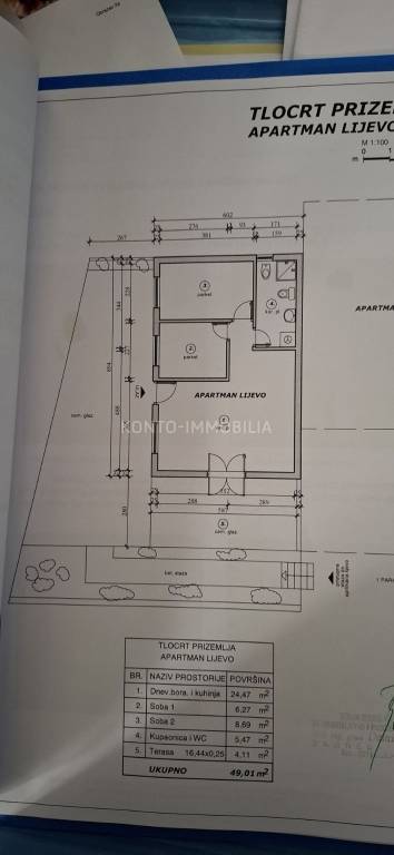 The apartment has an excellent internal layout, and although it is a smaller apartment, it has two bedrooms, a comfortable bathroom, and a kitchen, dining room and living room. Communication with the associated terraces, parking and garden, where there is an additional room - storage room / tavern of 16.00 m2, is also very good.