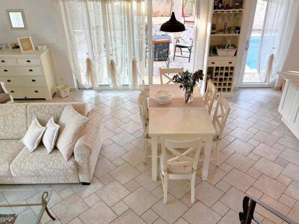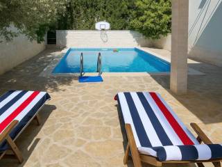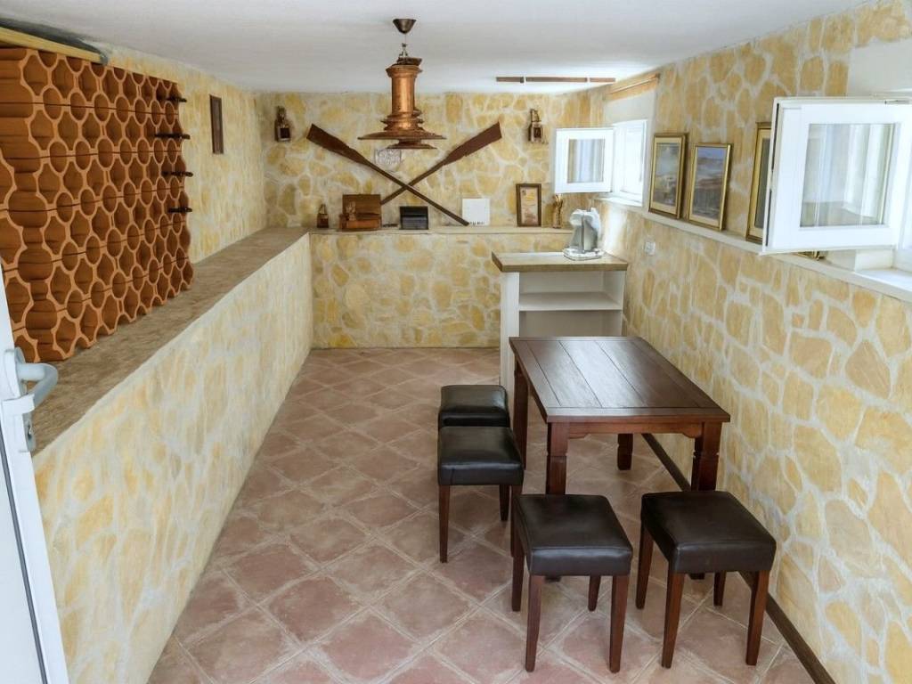 This 175 m² property is located near the beautiful bay and town of Jelsa and offers a pleasant stay in a space that combines rustic style, natural materials and the Mediterranean way of life. It is located on a plot of 450 m² and is just a few steps from the sea.   On the first floor there is a wine cellar and a social area. The ground floor consists of a spacious living area – a living room in which a stone fireplace creates a special atmosphere, connected to the kitchen and dining room, along with a bathroom with a shower. The living room opens onto a large terrace surrounded by Mediterranean flora, which provides a peaceful atmosphere for outdoor living.   Internal stairs lead to the first floor where there are three bedrooms, each with access to a balcony, and a spacious bathroom with two sinks and a bathtub.   The garden is designed to offer a pleasant outdoor space with a private pool and shower, a covered area by the pool and an outdoor fireplace. The property offers a good level of privacy, with practical vehicle access and two parking spaces.   The house was built in 2011, is well maintained, air-conditioned and equipped with underfloor heating, and is sold fully furnished and ready to move in.   Thanks to its neatness, practical layout and amenities, it is equally suitable for family stays and for tourist purposes, with clear advantages for anyone looking for a functional and quality property near the sea.