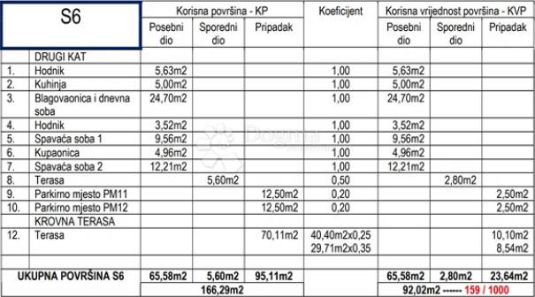On the second floor of a small building in Stupnik is apartment S6, a modern two-bedroom apartment with 65.58 m2 of interior space and an additional terrace of 5.60 m2. The special feature of this apartment is the large roof terrace of 70.11 m2, which provides an extraordinary private exterior for relaxing, working or decorating according to your own vision. The layout includes two bedrooms, a bathroom, a kitchen and a spacious dining room and living room of 24.70 m2. The price includes two parking spaces PM11 and PM12. The project is in the final stages of preparation, and the completion date is the end of 2026, which makes apartment S6 an attractive and long-term safe investment.