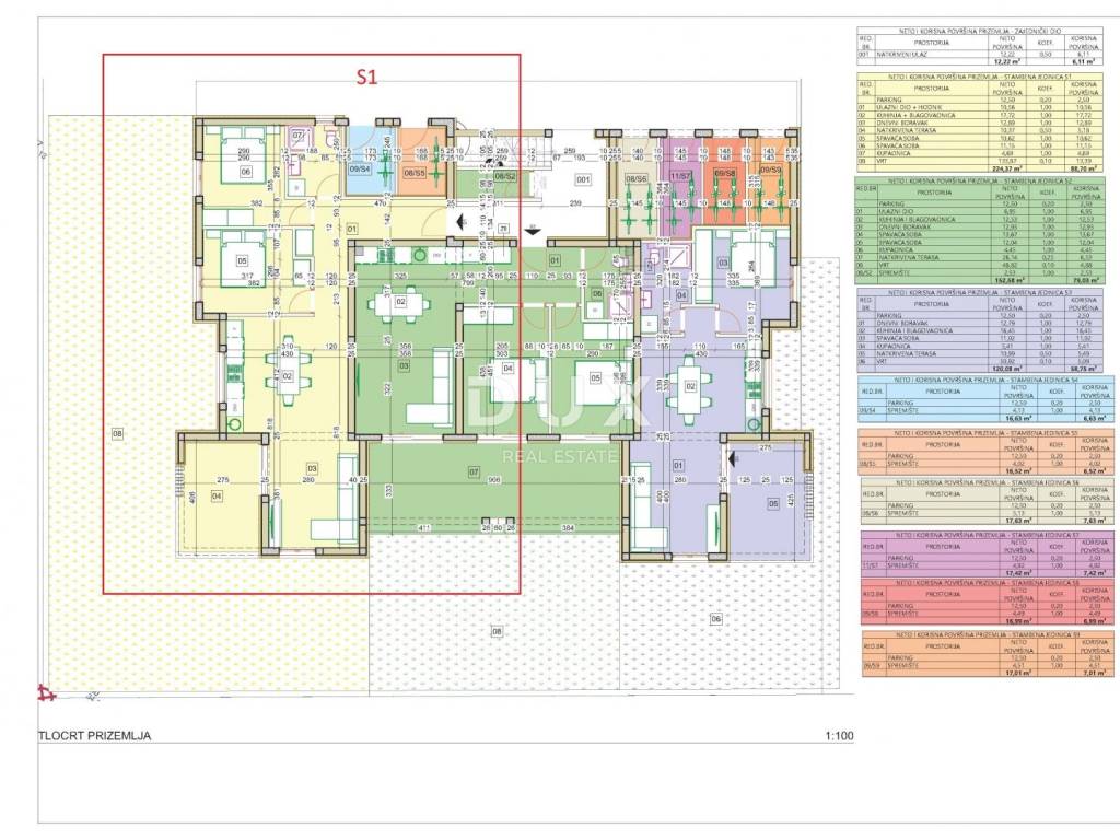 A two-bedroom apartment in a new building is for sale, with a usable area of 88.70m2 and a total area of 224.37m2, located on the ground floor of a residential building with a total of 9 residential units.