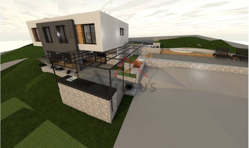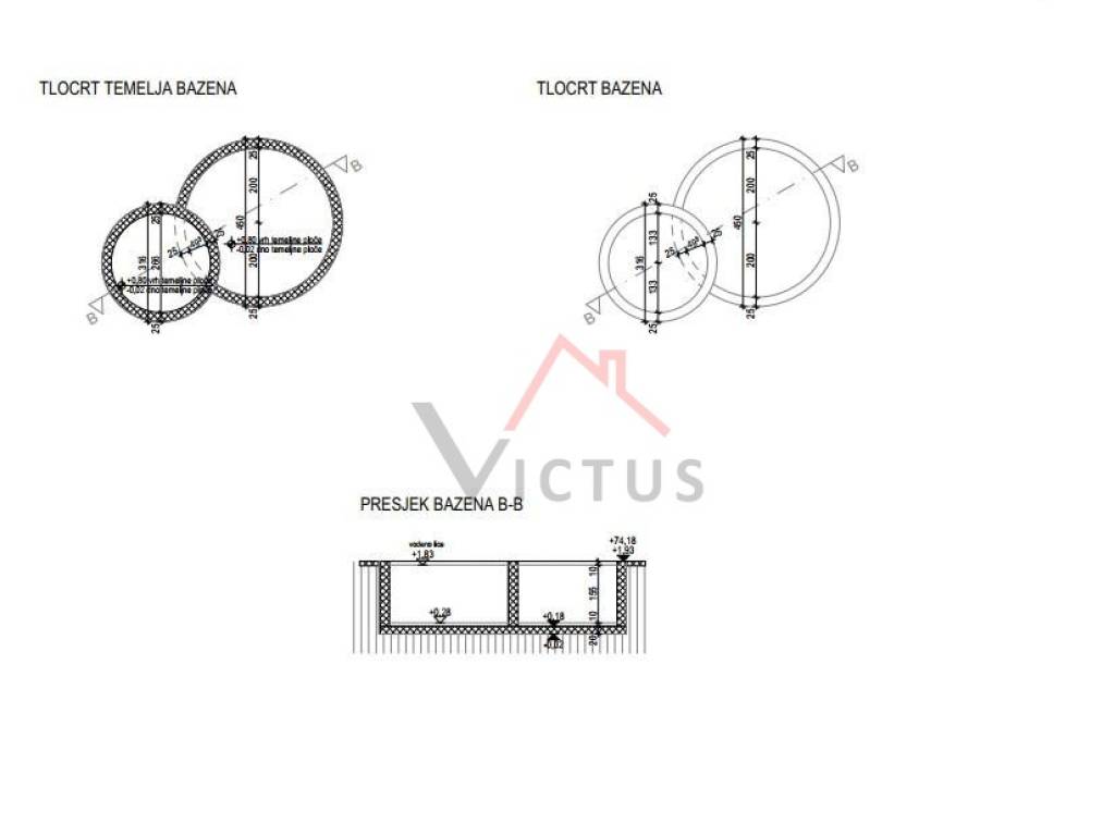 Участок площадью 572 м2 продается с проектом отдельно стоящей виллы на два этажа с бассейном и крытой террасой, для которой подана заявка на получение разрешения на строительство. Вилла имеет чистую жилую площадь 208 м2, включает 5 спален, каждая с собственной ванной комнатой. К участку ведет асфальтированный подъезд. По проекту, планировка виллы следующая: