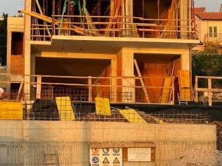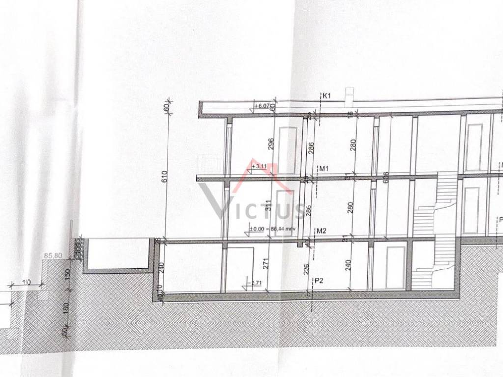 Объект находится в системе НДС, и выполнены следующие работы: построены подвал, первый и второй этажи, а также мансарда, построен бассейн и насыпи вокруг бассейна, сделаны подходные ступени и насыпи вокруг здания, а также построены все подпорные стены. Имеется возможность завершения строительства по желанию покупателя. За объект оплачены водные и коммунальные взносы, установлен временный электрический ввод, а также оплачены два водопроводных подключения.