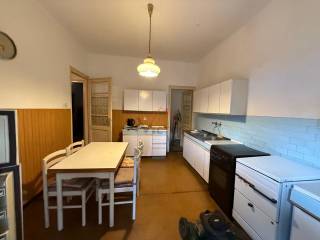 Дом состоит из цокольного этажа и верхнего этажа, подвала и просторного приусадебного участка. На цокольном этаже расположены гостиная, кухня, коридор, ванная комната, туалет, подсобные помещения и терраса, ведущая в огороженный двор с множеством зелени. Внутренней лестницей поднимаются на верхний этаж, где находятся три спальни и коридор. В недвижимости есть вход с верхнего этажа, а также из сада на цокольном этаже, что позволяет создать две жилые единицы. Перед домом находится сад с большим количеством зелени для комфортного отдыха и общения, а также несколько парковочных мест.