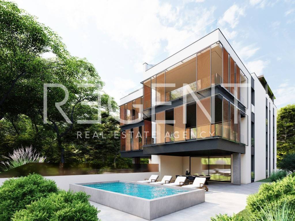 В очаровательном и тихом районе Дикло в Задаре, известном своими прекрасными пляжами и непринужденным средиземноморским образом жизни, расположен роскошный жилой комплекс, предлагающий высочайший уровень жизни. Это современное здание состоит из шести просторных квартир. На 2 этаже здания расположена роскошная четырехкомнатная квартира общей площадью НКП 151,60 м2. Квартира состоит из: прихожей (10,39 м2), гостиной с кухней и столовой (38,16 м2), спальни 1 (10,89 м2), спальни 2 (10,86 м2), ванной комнаты 1 (4,45 м2), ванной комнаты 2 (4,46 м2), прачечной (3,32 м2), лоджии (18,14 м2), крытой террасы (3,52 м2), кладовой (3,67 м2), террасы на крыше (29,99 м2), на которой находится джакузи. В квартире есть два гаражных парковочных места (13,76 м2). Квартиры оборудованы самым современным оборудованием и материалами. В здании используется тепловой насос для подогрева пола, а для кондиционирования воздуха используется высококачественное оборудование Mitsubishi. Полы покрыты керамической плиткой и паркетом первоклассного качества больших размеров, а столярные изделия Schuco обеспечивают превосходную изоляцию и эстетику. Для дополнительной роскоши в здании есть джакузи на террасах на крыше, открытый бассейн и подземный гараж. Этот новый жилой комплекс расположен в исключительном месте, недалеко от всех основных удобств. Всего за несколько минут ходьбы вы можете насладиться пляжами, а рестораны, кафе и другие удобства находятся в пределах легкой досягаемости. В то же время строгий центр Задара находится всего в 10 минутах езды, что делает эту недвижимость идеальной для тех, кто ищет тихий оазис с легкодоступными городскими удобствами.