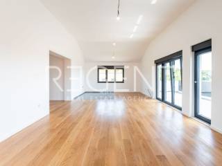 В недавно построенном здании с тремя жилыми единицами расположен этот привлекательный пентхаус, занимающий весь этаж. Здание выполнено в железобетонной конструкции с кирпичными перегородками, внешними ПВХ столярными изделиями с алюминиевыми жалюзи на электромоторе, а интерьер облицован комбинацией паркета и керамической плитки. Объект расположен в тихой и зеленой части Перявицы, на склоне с открывающимся видом на город, идеально подходящем для тех, кто ищет уединение, качество и связь с природой. Квартира состоит из просторной прихожей, из которой слева вход в главную спальню (20,35 м²) с собственным туалетом (1,48 м²). Рядом с ней находится большая ванная комната (8,06 м²), а справа от прихожей расположены еще две спальни площадью 16,65 м² и 8 м². Центральную часть квартиры составляет открытое пространство площадью 46,43 м² для кухни, столовой и гостиной, с прямым выходом на террасу площадью 32,03 м². Терраса ориентирована на город и предлагает беспрепятственный вид на городскую панораму и природу вокруг Перявицы – идеальное место для отдыха или общения на открытом воздухе. Также в квартире есть чердак с теплоизоляцией крыши, высотой 1,5 м и площадью 100 м². Общая площадь квартиры составляет 124,84 м² закрытой площади, а общая площадь с террасой составляет 156,87 м² без чердака. В стоимость квартиры включены три парковочных места, а отопление и охлаждение квартиры осуществляется электричеством, то есть отопление тепловым насосом, а охлаждение кондиционером. Ванная комната и туалет не облицованы керамикой и сантехникой, чтобы покупатель мог выбрать их при покупке квартиры. Для получения дополнительной информации и организации осмотра, пожалуйста, свяжитесь с нами.