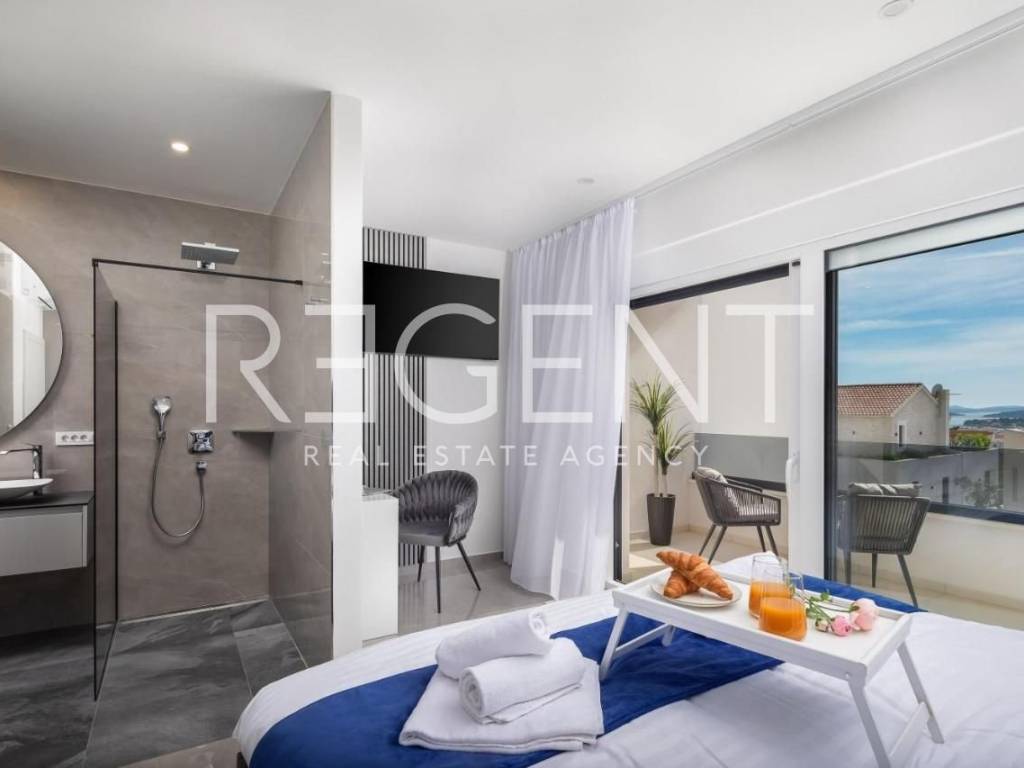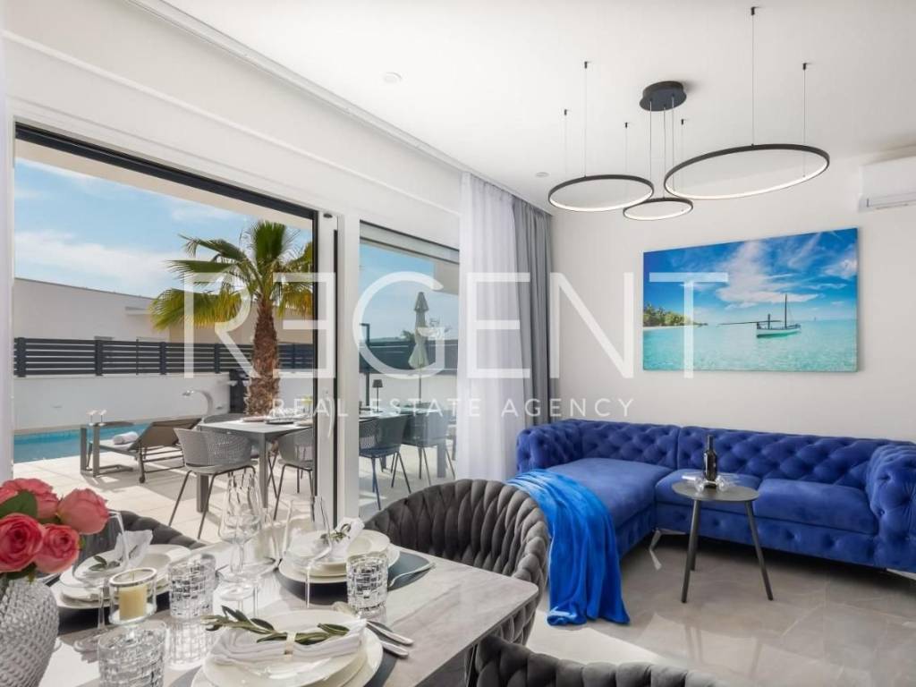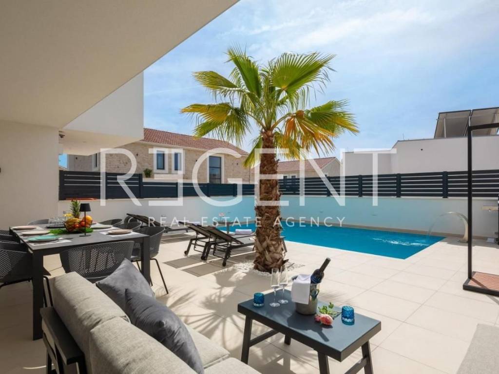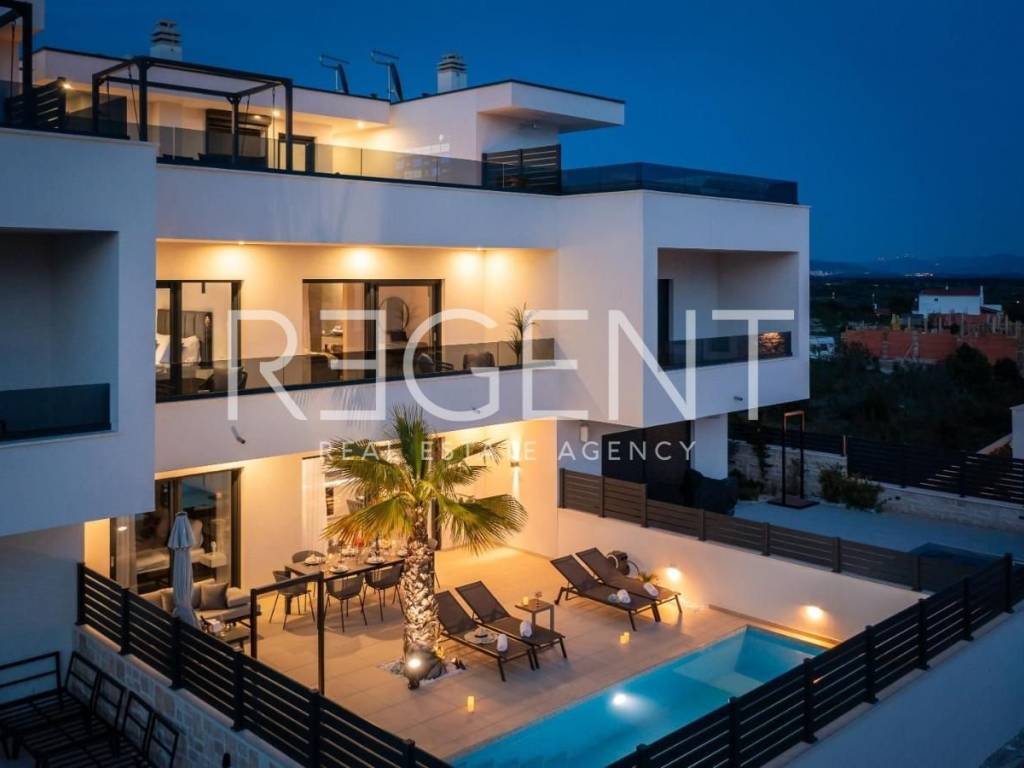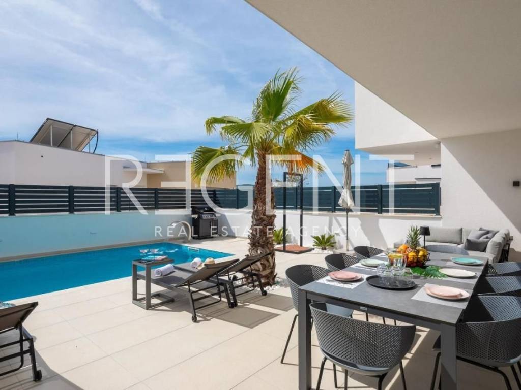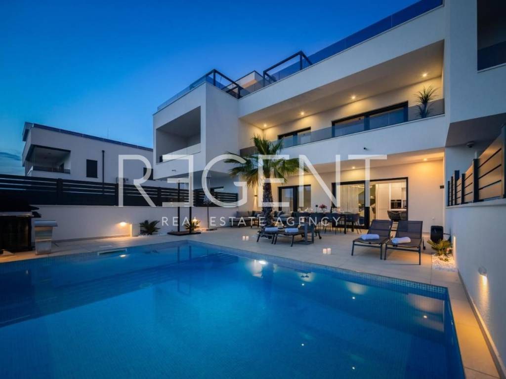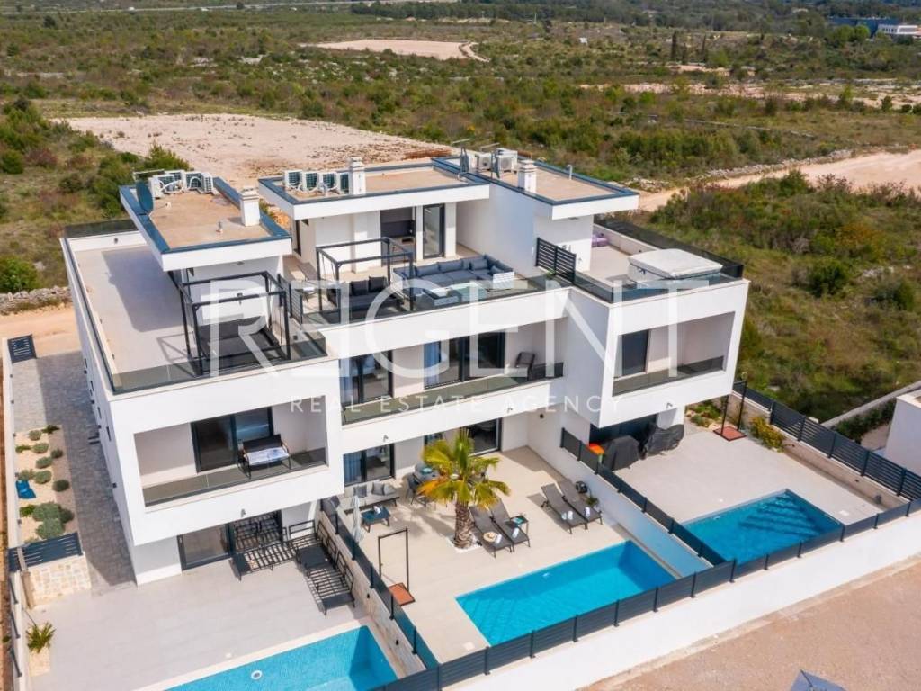 Расположенная на Адриатическом побережье Хорватии, эта вилла предлагает идеальное сочетание комфорта и отдыха. С тремя функциональными этажами, это идеальное место для того, чтобы убежать от повседневной жизни и насладиться миром.На первом этаже вы найдете просторную гостиную, полностью оборудованную кухню и элегантную спальню с прямым доступом к бассейну. На первом этаже расположены две роскошные спальни с отдельными балконами и видом на море, каждая с собственной ванной комнатой. Лучшая часть этой виллы - это просторная терраса на крыше с панорамным видом на море, окружающие острова и город Водице, которая включает в себя открытую кухню с мини-баром - идеальное место для наслаждения закатом или романтического вечера в открытом кинотеатре.На открытом воздухе есть бассейн с подогревом, оборудование для барбекю и просторный двор для отдыха, а кухня и открытая столовая позволяют наслаждаться трапезой на свежем воздухе. Вилла также предлагает бесплатный Wi-Fi, кондиционер и частную парковку для комфортного проживания.Расположенная недалеко от популярных пляжей и города Водице, вилла является отличным выбором для тех, кто хочет мира и отдыха, а также близости ко всем местным достопримечательностям.Это идеальное место для отдыха и наслаждения красотами Адриатического побережья.