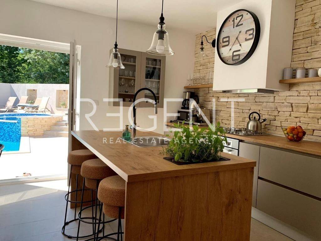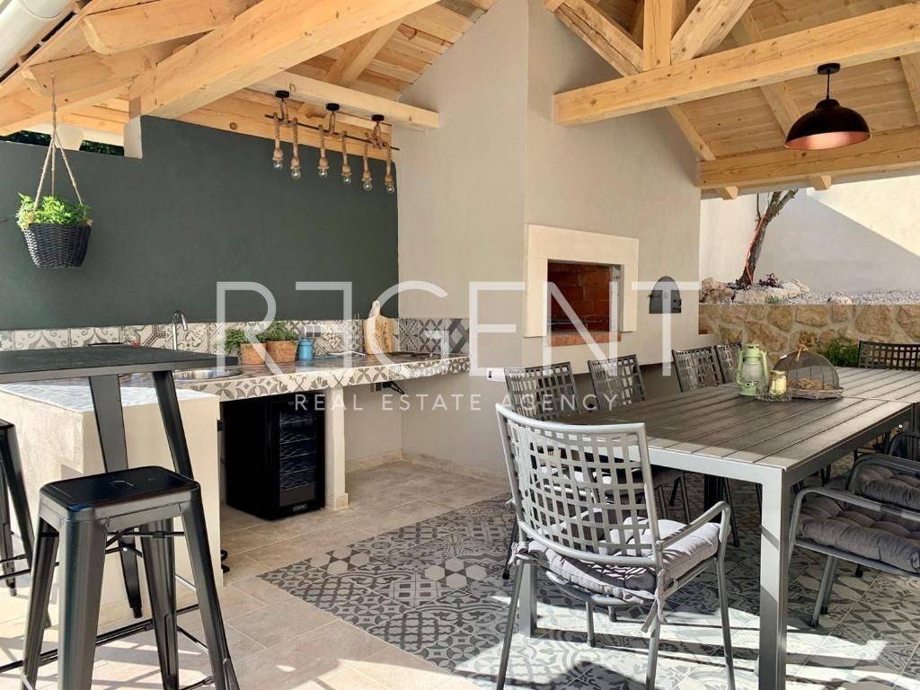 Дом с бассейном на участке 713 м2, расположенный в тихом месте Дривеник, всего в 8 км от Цриквеницы. Дом находится в конце улицы, в окружении зелени и леса, что обеспечивает полную приватность и покой. Дом занимает два этажа общей площадью около 190 м2, а также дополнительное вспомогательное помещение в стадии roh-bau, которое в настоящее время используется как кладовая. Первый этаж представляет собой открытое пространство с кухней, столовой (стол на 10 человек), гостиной и главной спальней с собственной ванной комнатой. На первом этаже также есть небольшой туалет, который используется как прачечная и туалет для гостей. На верхнем этаже расположены три спальни, каждая с собственной ванной комнатой. Первая комната имеет выход на просторную террасу площадью 16 м2, вторая комната оборудована галереей (всего 4 спальных места), а третья комната имеет французский балкон с видом на бассейн. Дом категоризирован с 4 звездами, полностью меблирован и готов к использованию или продолжению туристической аренды. Вместимость 8+2 человека, а в гостиной можно разместить еще двух взрослых. Перед домом находится бассейн, а на участке предусмотрена парковка на 3 автомобиля, а также дополнительные возможности парковки в непосредственной близости. Недвижимость в настоящее время используется для туристической аренды. Дом расположен в Дривенике, тихом месте в 8 км от Цриквеницы и пляжей. Расположение обеспечивает приватность, а поблизости находятся все необходимые удобства – магазины, рестораны и транспортные сообщения с Цриквеницей, Риекой и автомагистралью. Для получения дополнительной информации или договоренности о просмотре, пожалуйста, свяжитесь с нами.