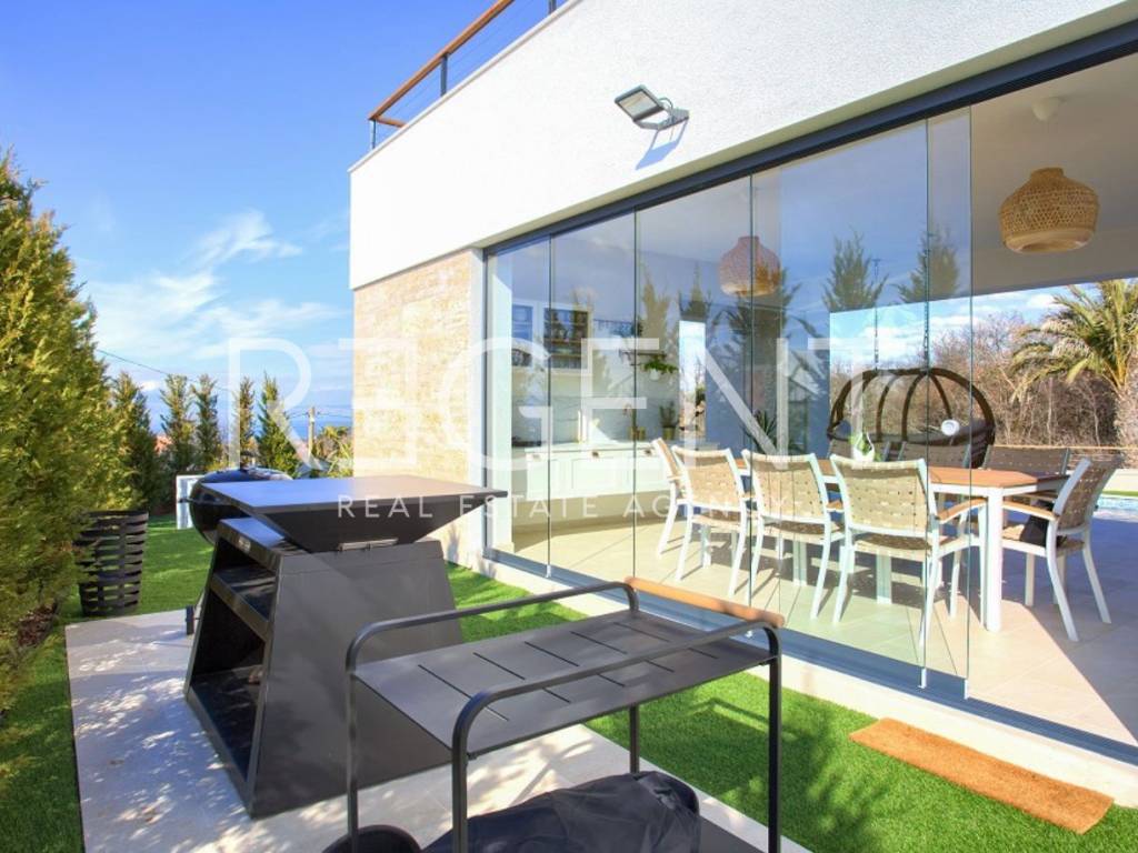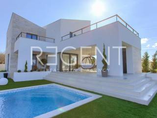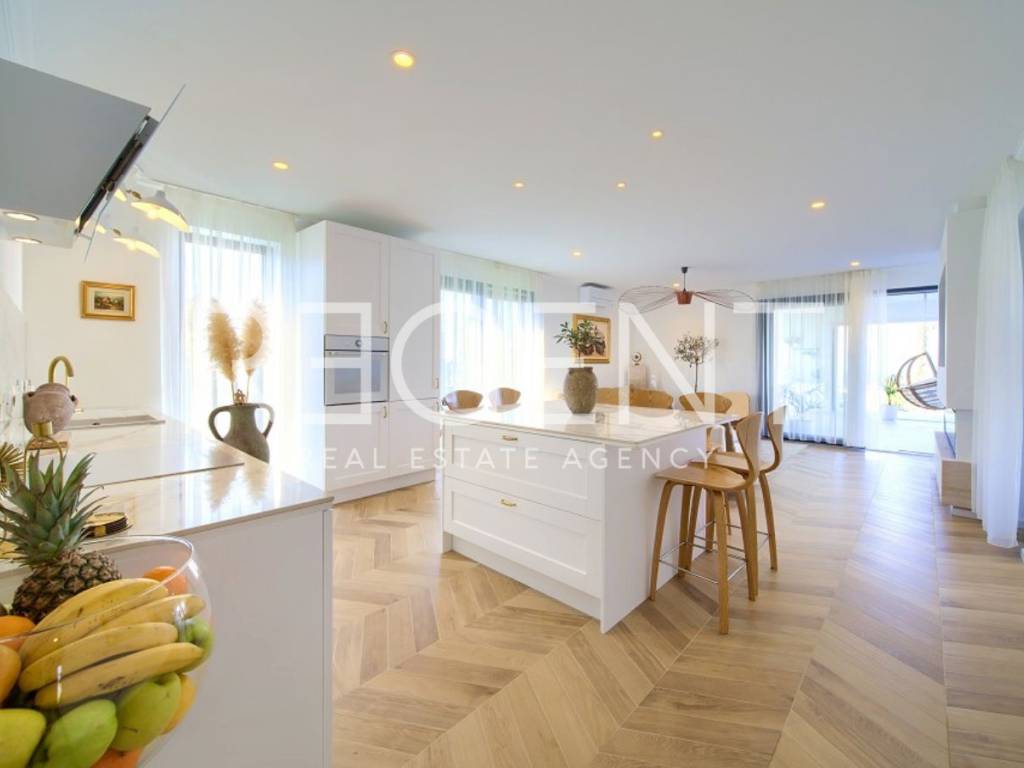 На самой высокой точке Малински, с захватывающим видом на море, находится красивая вилла, расположенная всего в нескольких минутах езды от центра города и ближайших пляжей. Идеальное расположение и исключительная архитектура делают его идеальным выбором для тех, кто ищет роскошный отдых с уединением. Эффектный интерьер виллы расположен на трех этажах, каждый площадью 130 м2. В уникальном интерьере узнается современная классика, вдохновленная итальянским дизайном. Отделка — это то, что захватывает дух в этой красивой вилле, даря гостям ощущение тепла дома и одновременно создавая впечатление простора и роскоши. Первый этаж состоит из прихожей, ванной комнаты, просторной кухни со столовой и гостиной, большая часть которой окружена стеклянной стеной и находится в прямом контакте с огромной открытой террасой. Здесь же находится первая из четырех спален с ванной комнатой и собственной террасой. На этаже находится главная спальня (20м2) с ванной комнатой и роскошной террасой (20м2), включающей в себя джакузи на открытом воздухе и две дополнительные комнаты. Одна с двуспальной кроватью, ванной комнатой и собственной террасой, а другая с раздельными кроватями и отдельной ванной комнатой. Вилла также предлагает своим гостям мини-винный бар, профессионально оборудованный тренажерный зал, детскую игровую комнату с мультимедийной зоной и спа-зону с финской сауной. Волшебный экстерьер простирается на 700м2 и предлагает подогреваемый бассейн площадью 38м2, чистоту и естественность которого обеспечивает новейшая технология солинатора. Для полного впечатления есть также массажная зона бассейна, а эстетам обязательно понравится тот факт, что бассейн вымощен мозаичной плиткой с жемчужным эффектом, которая мерцает на солнце. Здесь также есть солярий и несколько специально оформленных зон для отдыха и релаксации с богатым садоводством и зоной для гриля, которая включает в себя роскошный садовый гриль Quan. Из дополнительных удобств стоит отметить игровую площадку и теннисный корт, которые предоставляются владельцам виллы для использования. В доме есть несколько парковочных мест и два гаража. Основные характеристики: СПАЛЬНИ 7 ВАННЫХ КОМНАТУЧАСТОК 850 м2БАССЕЙН 38 м2ОТ МОРЯ 2 кмОТ АЭРОПОРТА 15 кмКЛАСС ЭНЕРГОЭФФЕКТИВНОСТИ A+ГОД ПОСТРОЙКИ 2021 Для получения дополнительной информации и просмотра, пожалуйста, свяжитесь с нами!